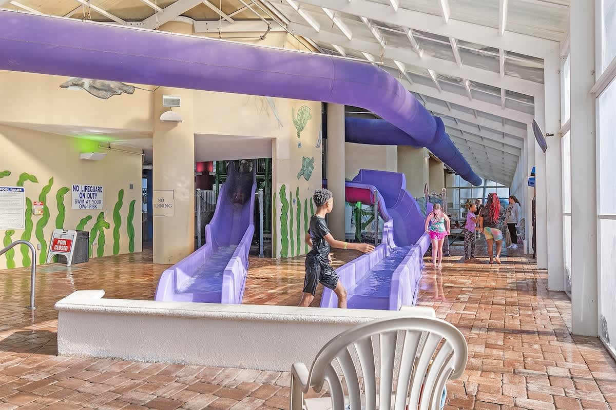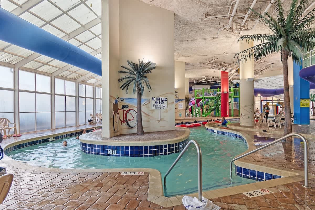 30,000 Foot HEATED Indoor Water Park featuring Slides, Lazy River, Indoor and Outdoor Pools, and Hot Tubs