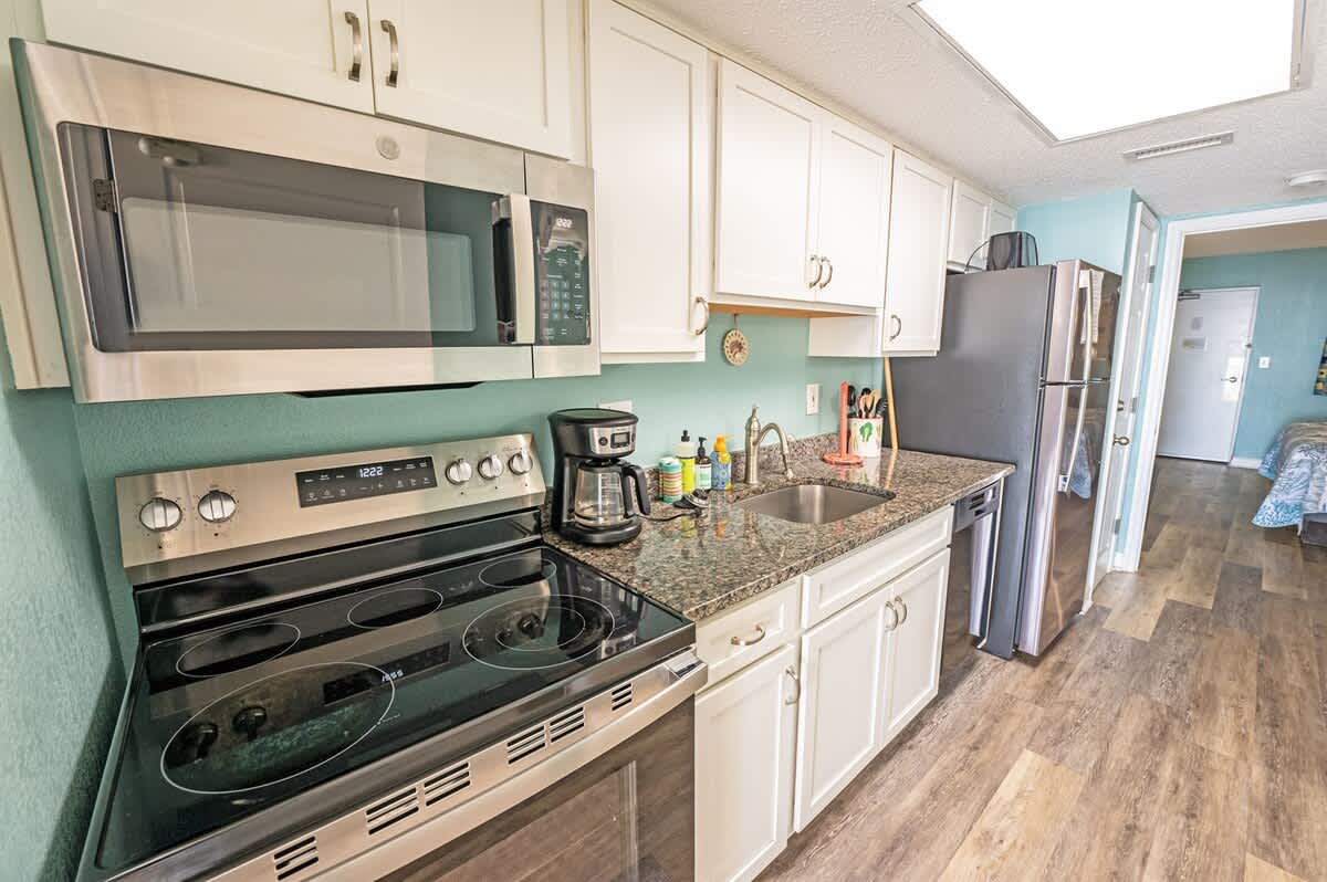 Amazing direct oceanfront views from the balcony are the perfect setting for your morning coffee or evening cocktails. Enjoy the convenience of your own kitchen featuring a full-sized fridge, microwave, and HDTV