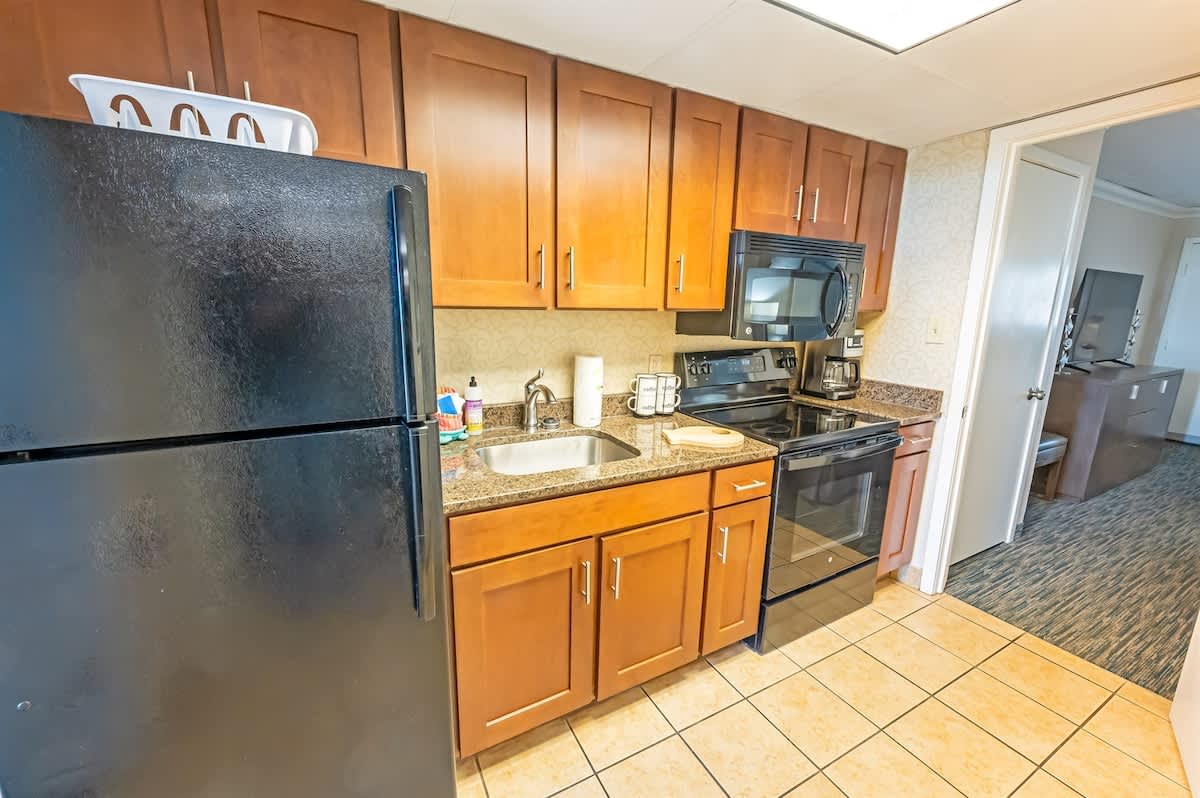 This condo features two queen beds and comes equipped with an updated full-size fridge, range, oven, and microwave. From the 2nd floor, you can enjoy an amazing direct ocean view of the Atlantic Ocean. It’s centrally located in the heart of Myrtle Beach, just minutes away from Broadway at the Beach, the airport, the boardwalk, various restaurants, golf courses, bars, entertainment venues, and more! We hope you enjoy this condo as much as we do, and don’t forget, FREE WIFI is available for your convenience.