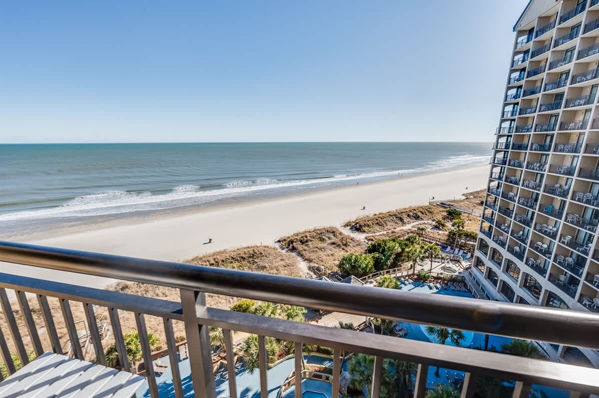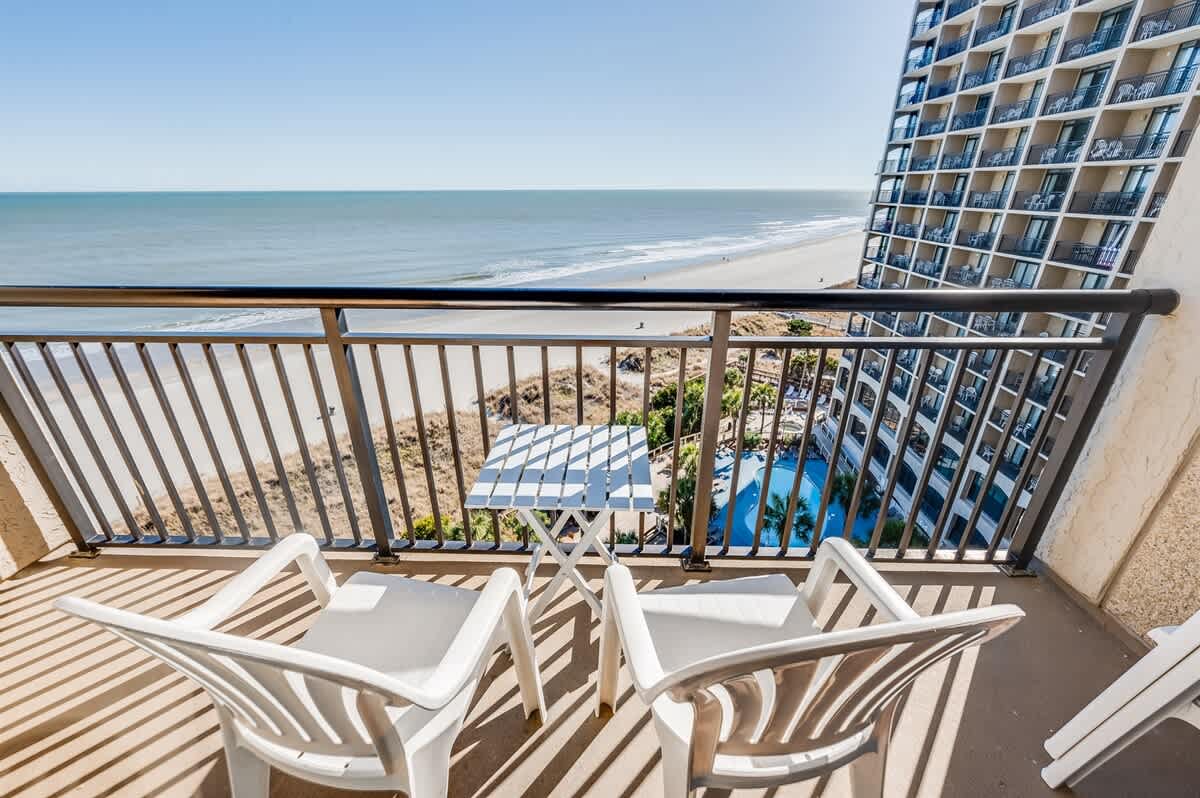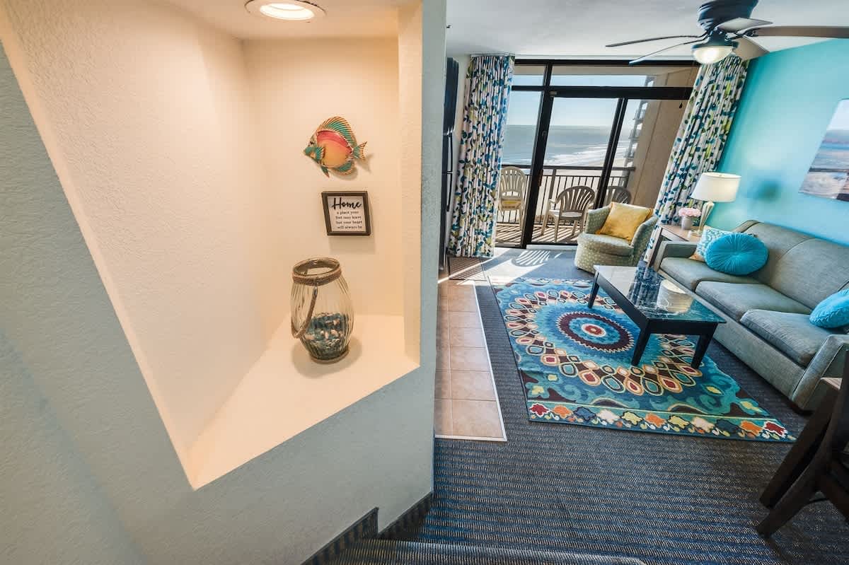 Newly remodeled with all new furniture, this direct oceanfront 1-bedroom condo at Beach Cove Resort on the 9th floor features a private balcony, 2 queen beds, a sleeper sofa (sleeps up to 6), a newly updated walk-in shower, 2 HDTVs, a full-size fridge, microwave, 2-burner cooktop, high-speed free Wi-Fi, professional cleaning, a hairdryer, and free onsite parking.