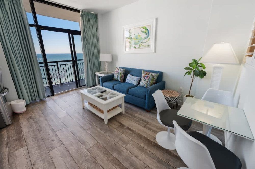 This condo has resort views from the balcony. This condo has 1 Queen 2 Twins , Queen Sleeper Sofa, Twin Bed Cot and sleeps up to 7. Located in Myrtle Beach, SC in the exclusive Mariners Cove. Microwave oven, LCD TVs, and private bathrooms are included in this condo. Outdoor pool and private oceanview balcony along! FREE WIFI! We hope you enjoy this condo as much as we do!