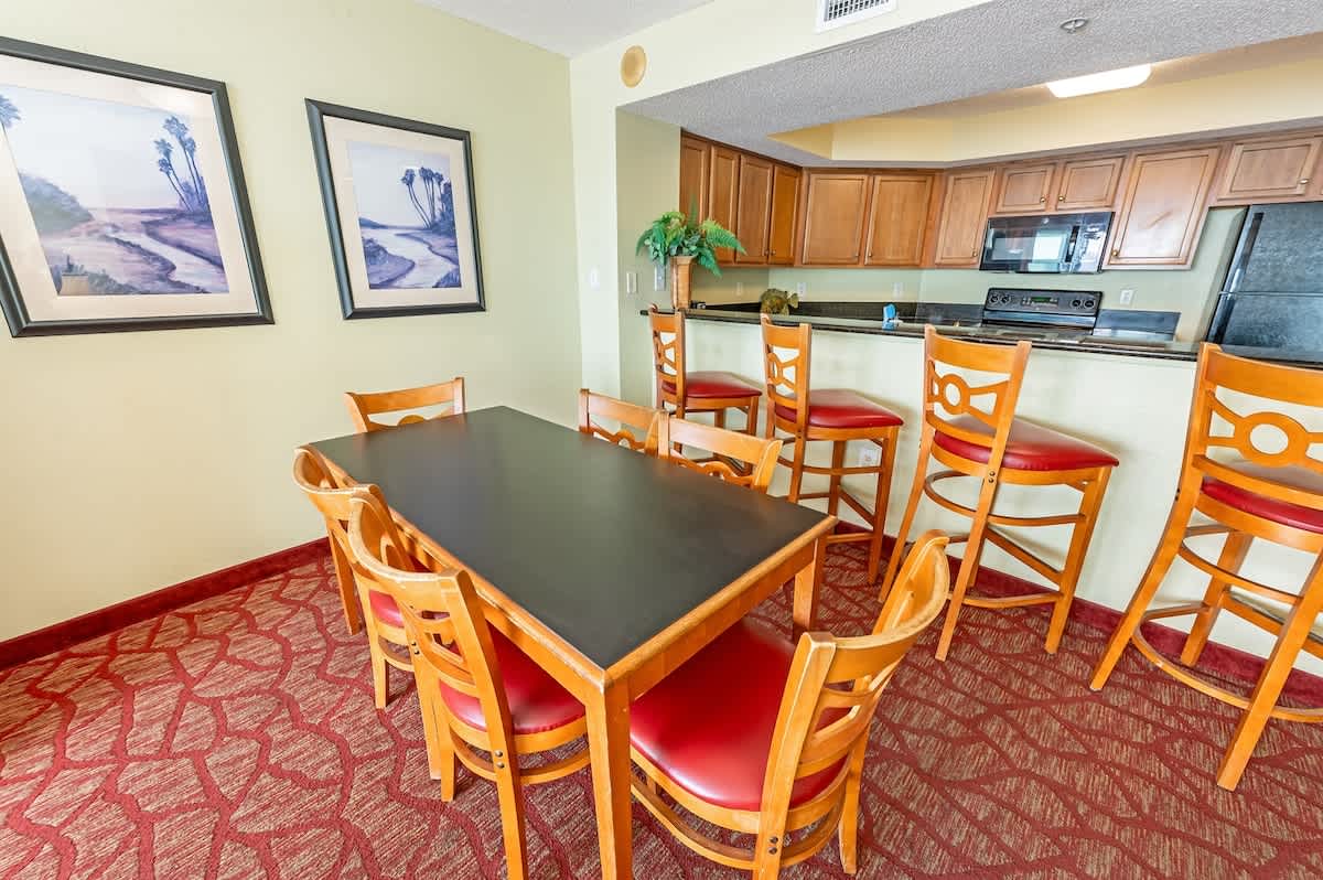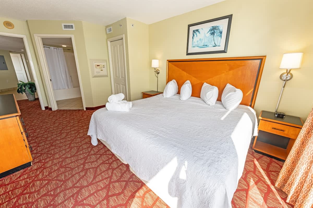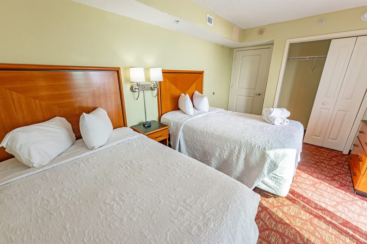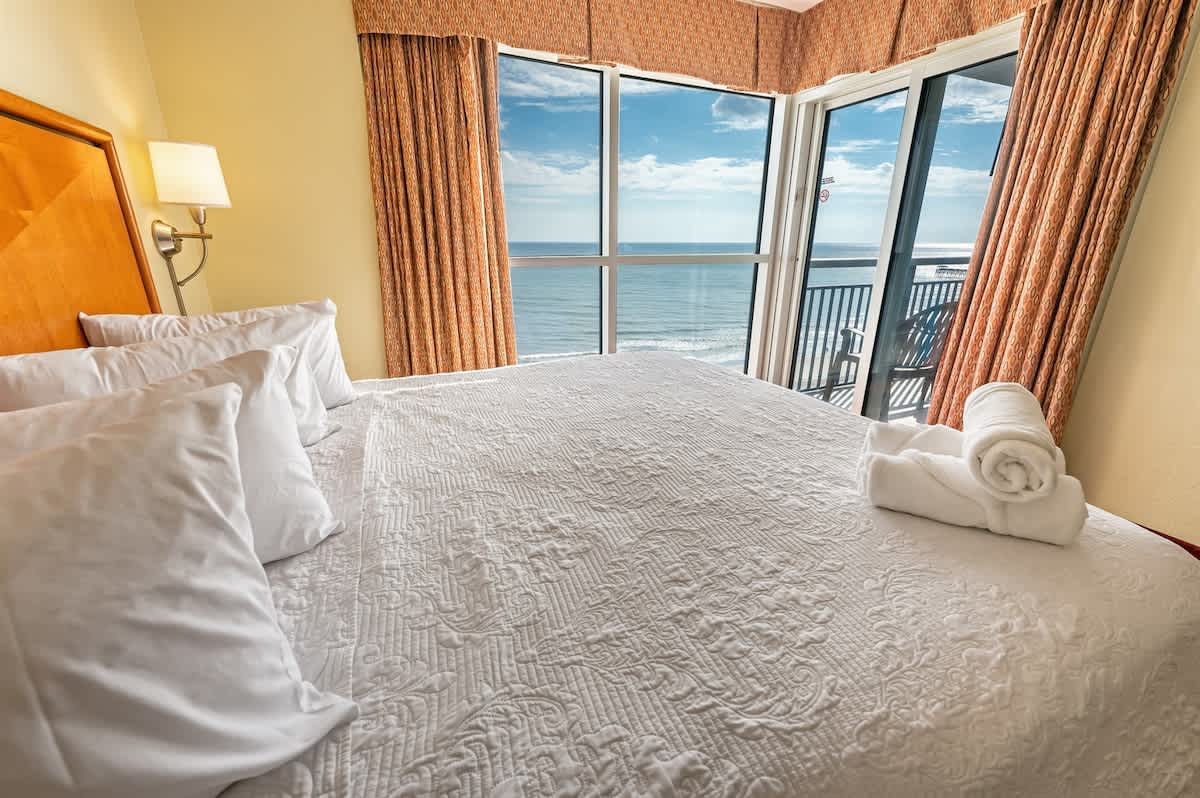 – The condo sleeps up to six people with one king bed, two queen beds, and a sleeper sofa. There are sheets available