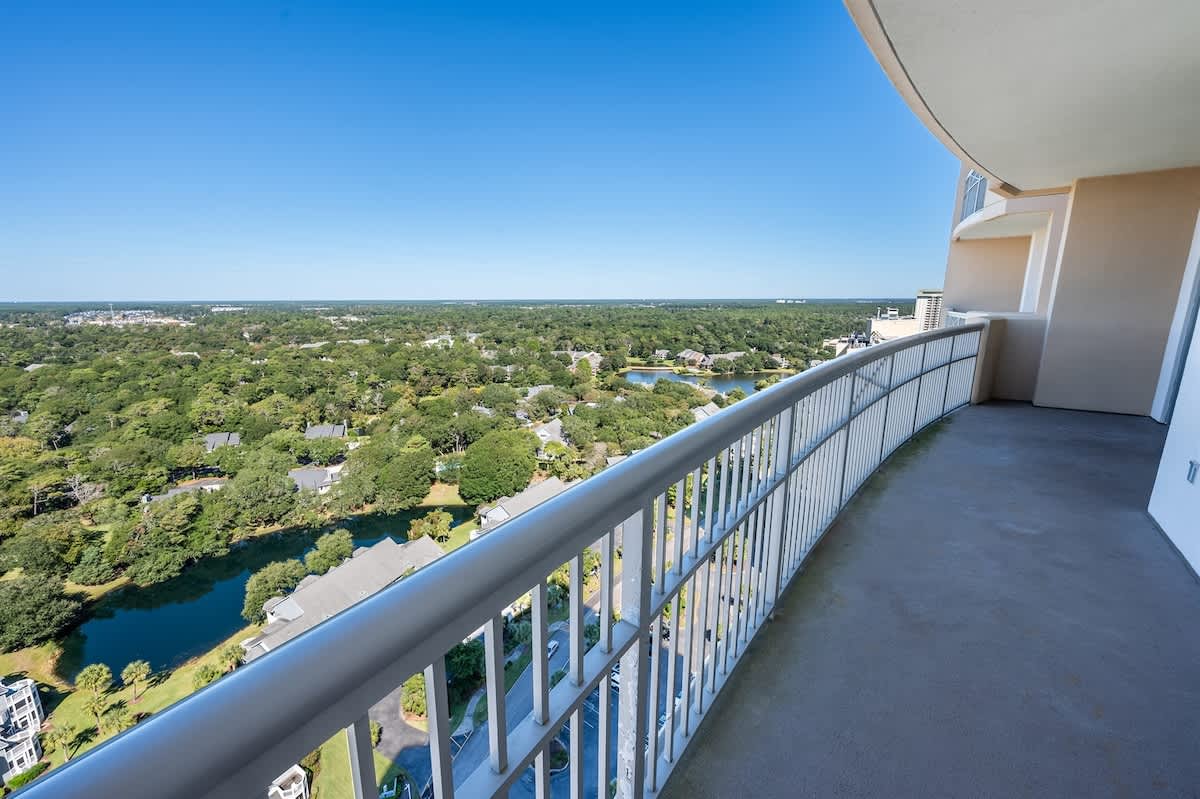 The oversized balcony is designed for both quiet moments and time together. Begin your mornings with coffee at the outdoor dining table as the sky shifts in color, or relax in the evening while watching the tide roll in. From this third-floor perch, you can spot seabirds, watch the waves, and enjoy uninterrupted ocean views. Beyond your door, Kingston Plantation offers resort-style amenities, including access to pools, hot tubs, and walking paths that connect the property to the beach.