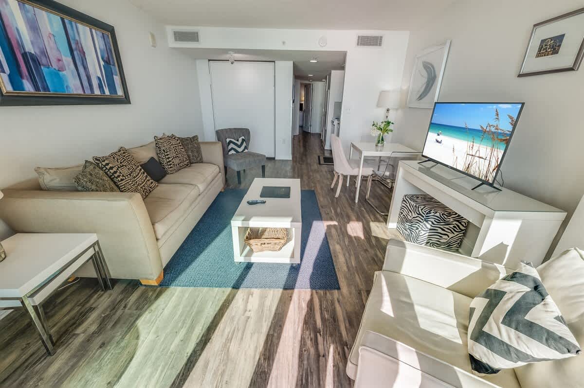 Experience breathtaking ocean views from the balcony—an ideal backdrop for your morning coffee or evening cocktails. Enjoy the convenience of a fully equipped kitchen, featuring a full-sized fridge, microwave, and an HDTV.