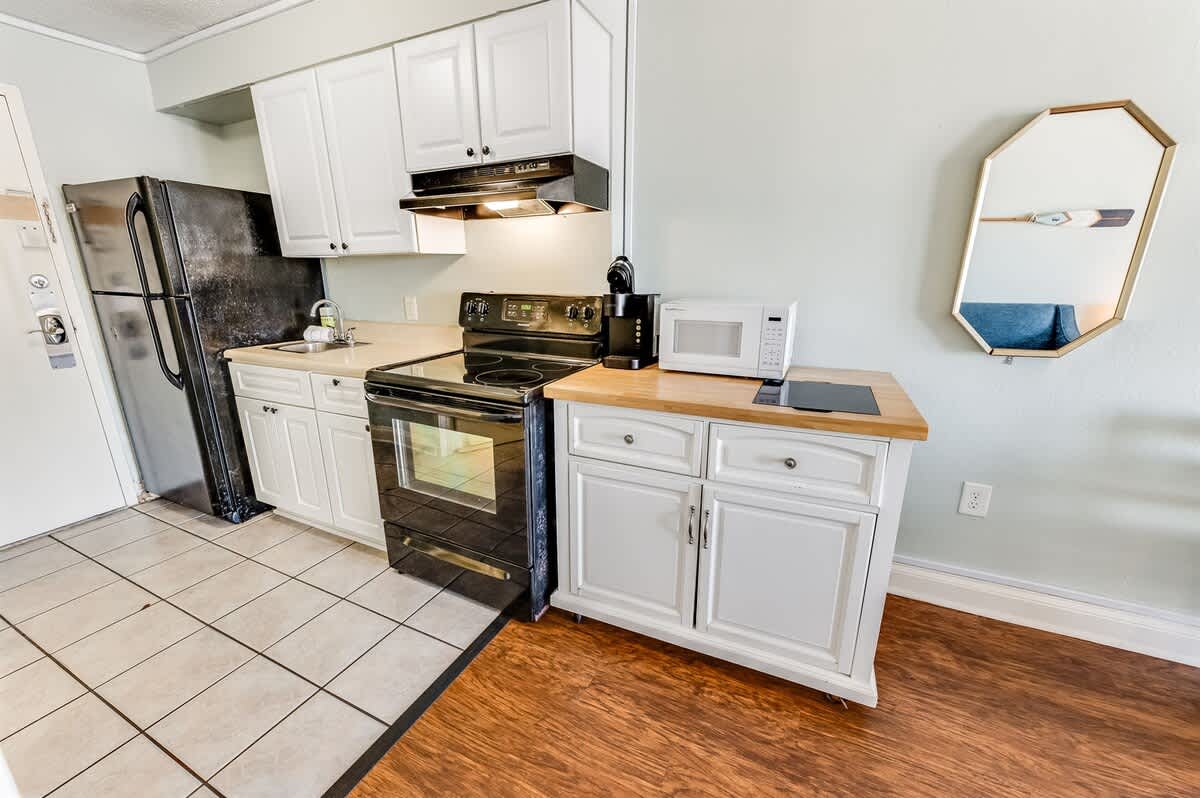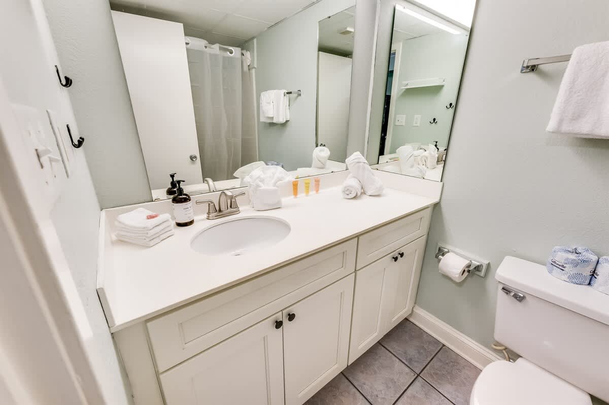 This condo has great views of the ocean from the balcony, and you have direct access to the ocean. It’s part of a beautifully landscaped oceanfront resort that provides 24/7 on-site security and guest service via text, email, or phone. The condo has a private bathroom and a small table for enjoying meals while watching the waves. There’s also a hairdryer, which is a nice touch.