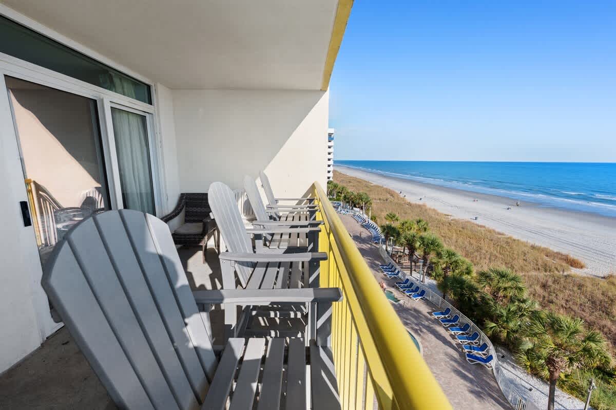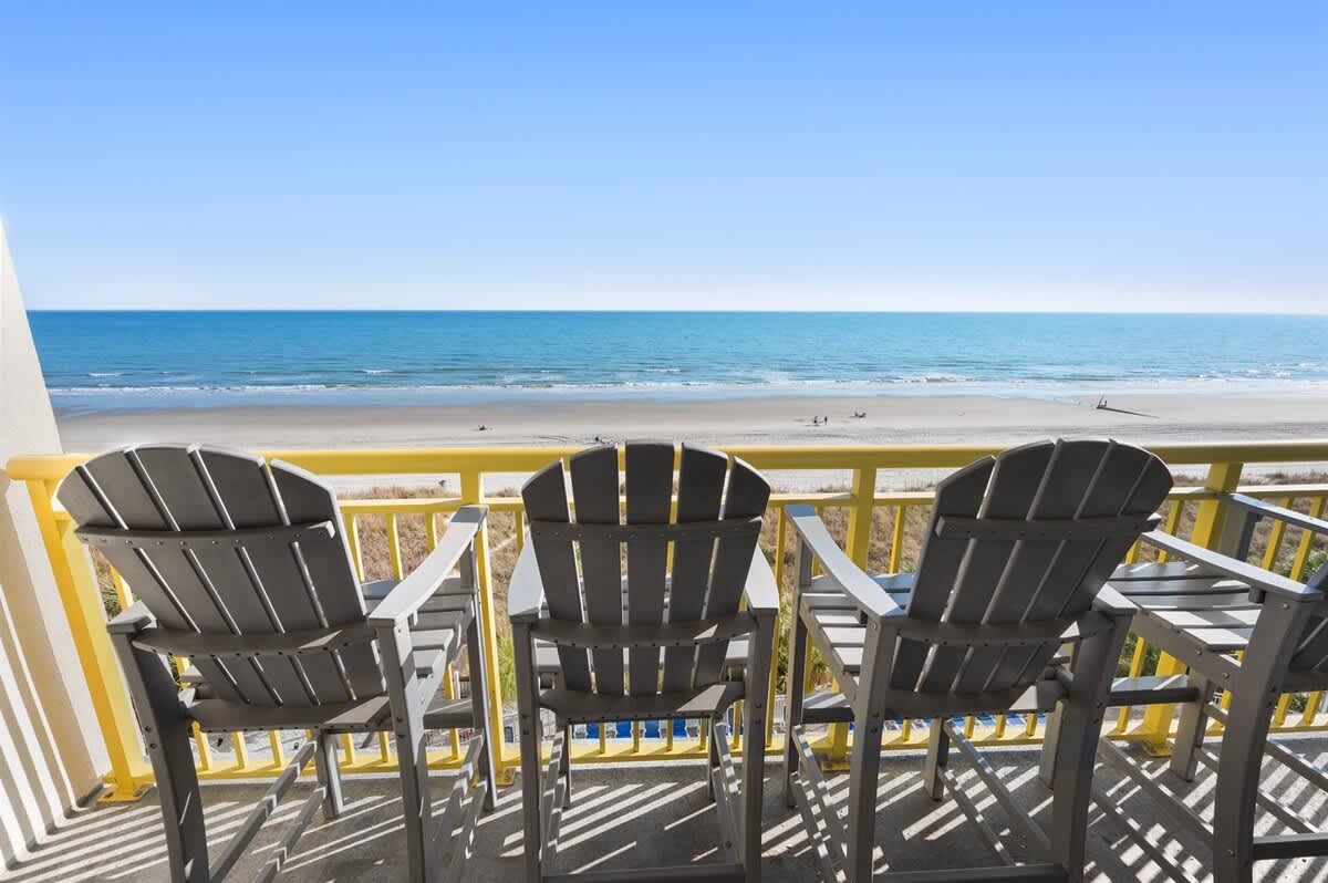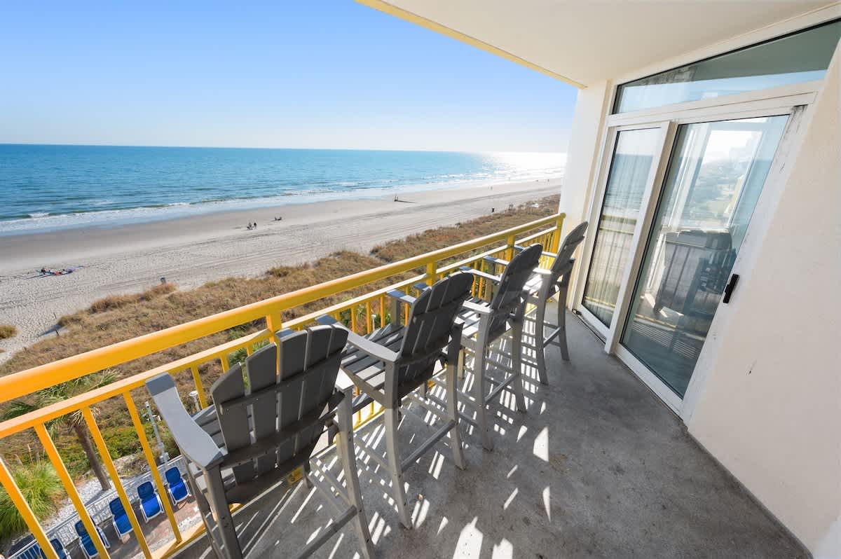 * Three bedrooms and three bathrooms, situated directly on the oceanfront of Bay Watch Resort’s fifth floor, complete with a private balcony.