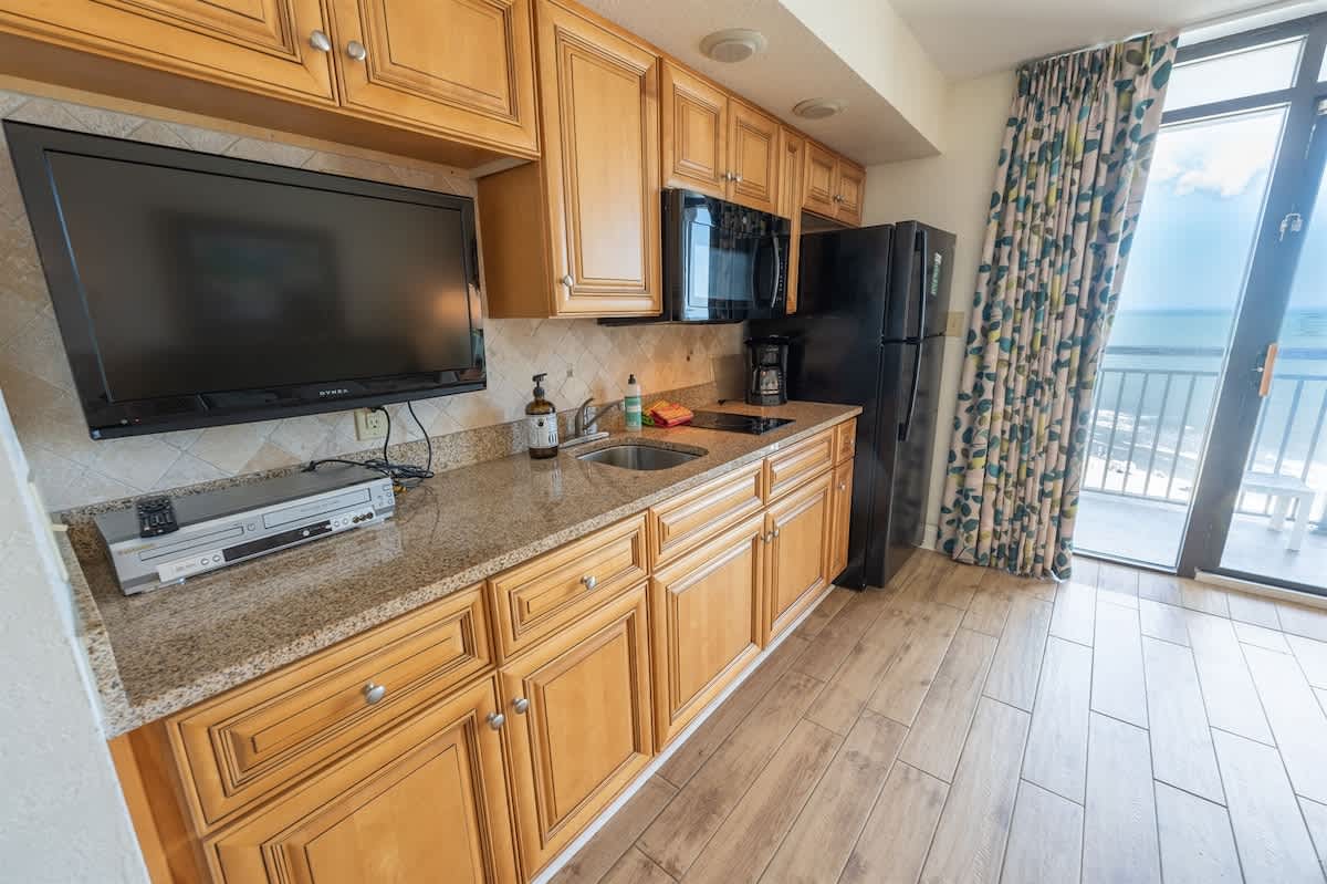 Our modern beachfront condo is directly facing an amazing pool and ocean views for miles. This condo has modern appliances, HDTVs, a full-sized refrigerator and granite countertops. This condo is one of the newest listings. Welcome to your Beach Paradise with views of the ocean from almost anywhere in the condo. Brand new window treatments and shutters to sleep in (if needed).