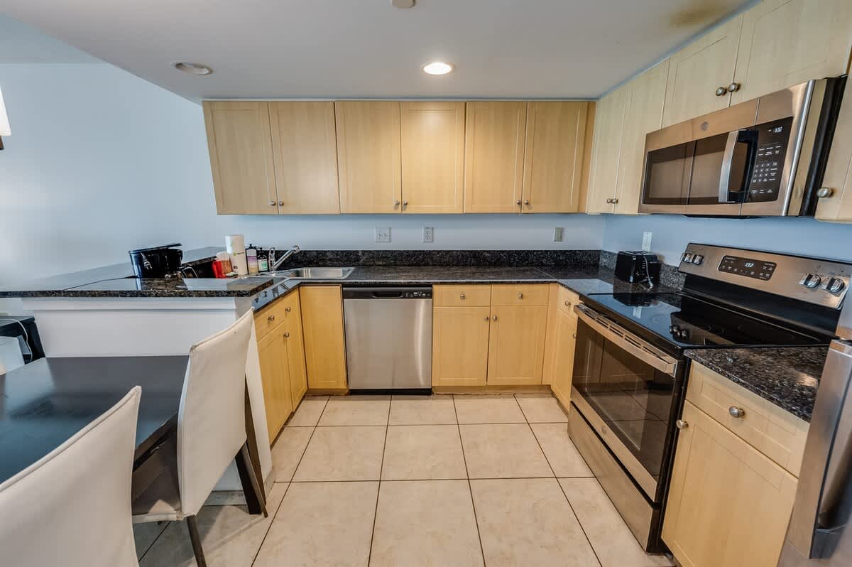 The condo includes a kitchen where you can prepare your own meals and enjoy time together. There is space to dine indoors or bring a cup of coffee out to the balcony, letting the sound of the ocean set the tone for slow mornings and unhurried evenings.