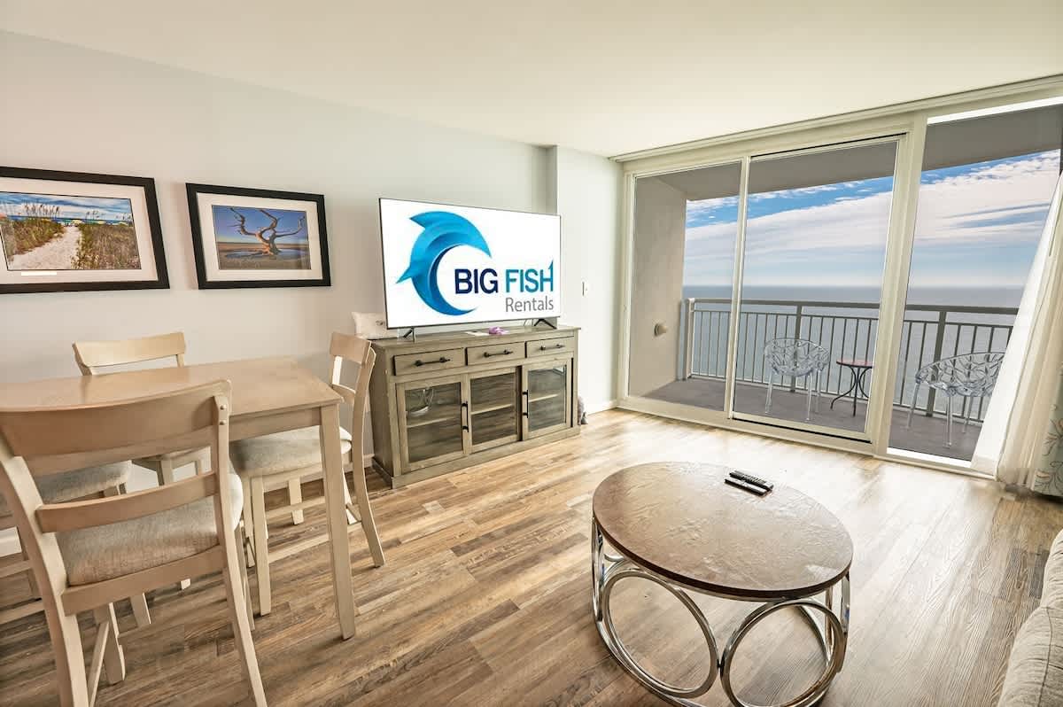 Set on the penthouse floor of Sandy Beach Resort, this oceanfront condo offers a relaxed coastal setting designed for comfort and ease. Inside, the layout flows from the living area to a private balcony overlooking the water, creating a constant connection to the outdoors. The condo includes air conditioning and heating, WiFi, and a TV for downtime between beach days and evenings out along the boardwalk.