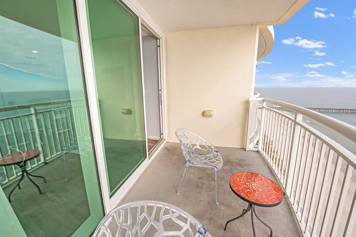 The private patio or balcony is a highlight, offering direct oceanfront views and a peaceful spot to pause with the sea just below. Guests also have resort access, including pools, a hot tub, and a gym. Shared beach access places the sand and shoreline only steps away, while the elevator makes coming and going easy.