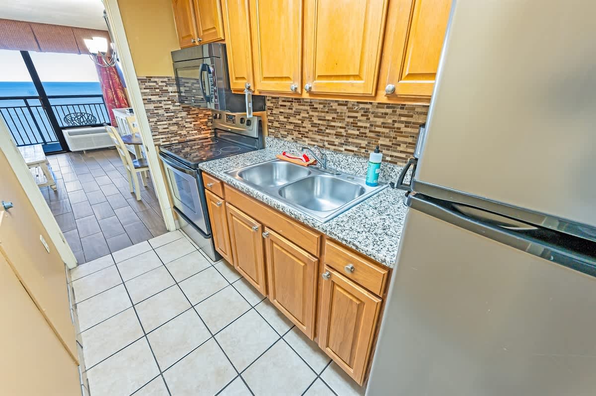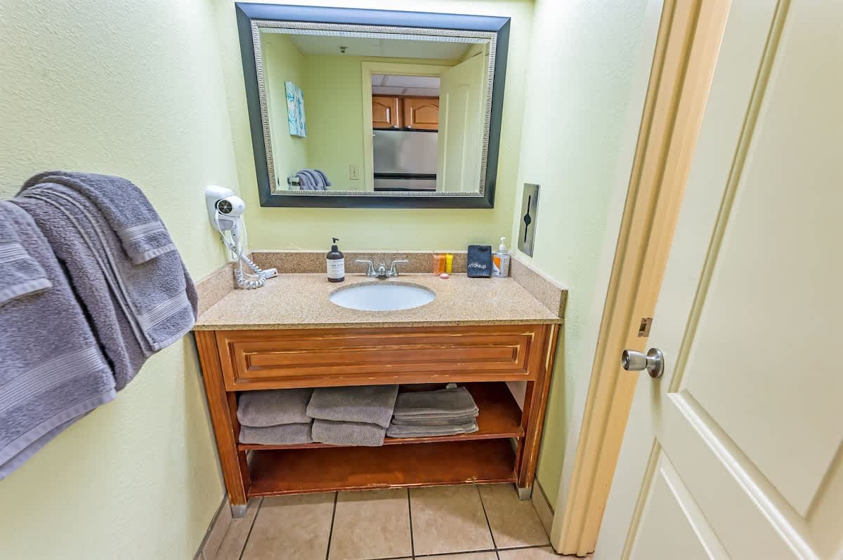 The kitchen provides space to prepare meals and gather at the dining table, making it easy to balance meals out with relaxed time at the condo. Whether you’re starting the day indoors or returning after hours by the water, the kitchen supports a flexible, easygoing stay.