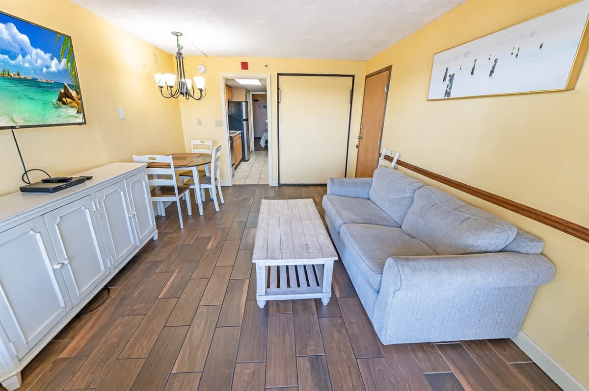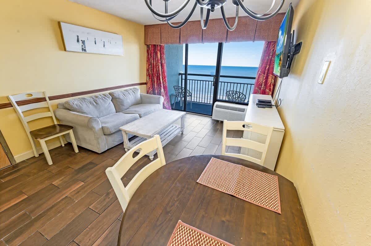 Located in the northern section of Myrtle Beach, the condo sits along a quieter stretch of coastline while remaining close to restaurants, shops, and family-friendly attractions. The surrounding beachfront is well suited to easy walks and relaxed afternoons by the sea.
