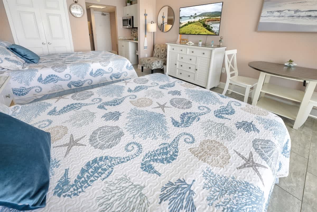 * 2 Queen Beds, Sleeps up to 4, sheets/towels provided