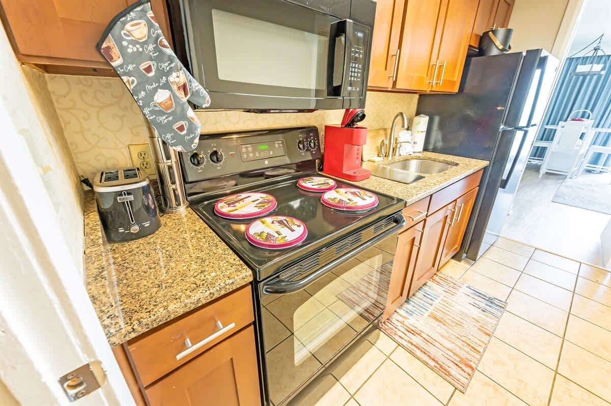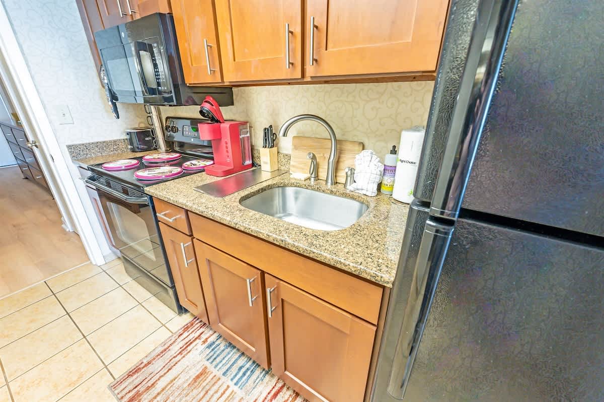 * Full Sized Refrigerator and Fully Equipped Kitchen, with Kitchen Table