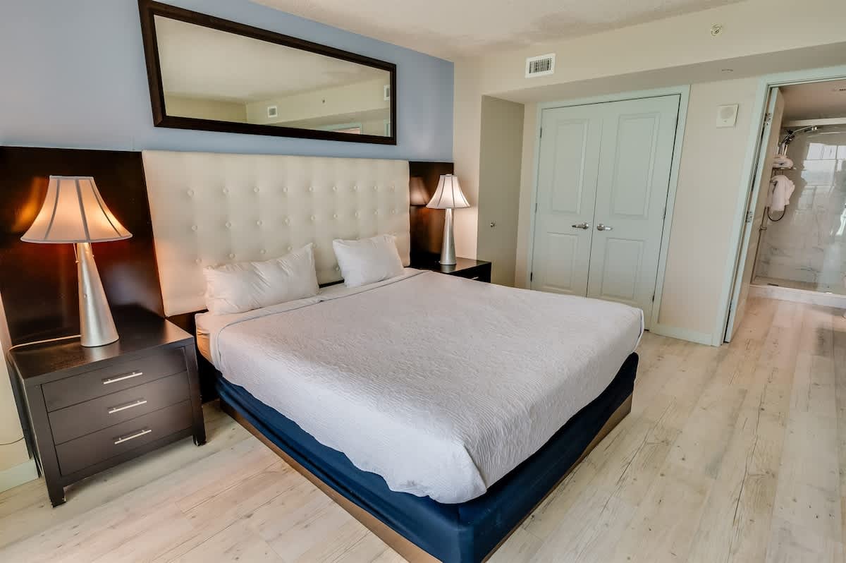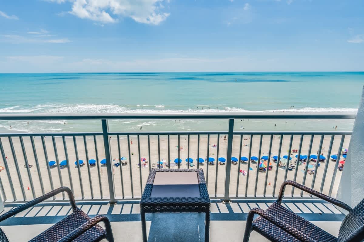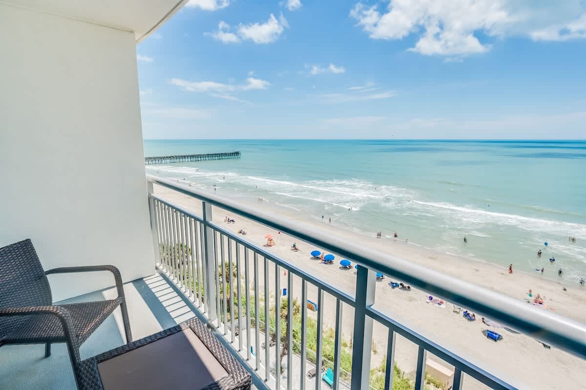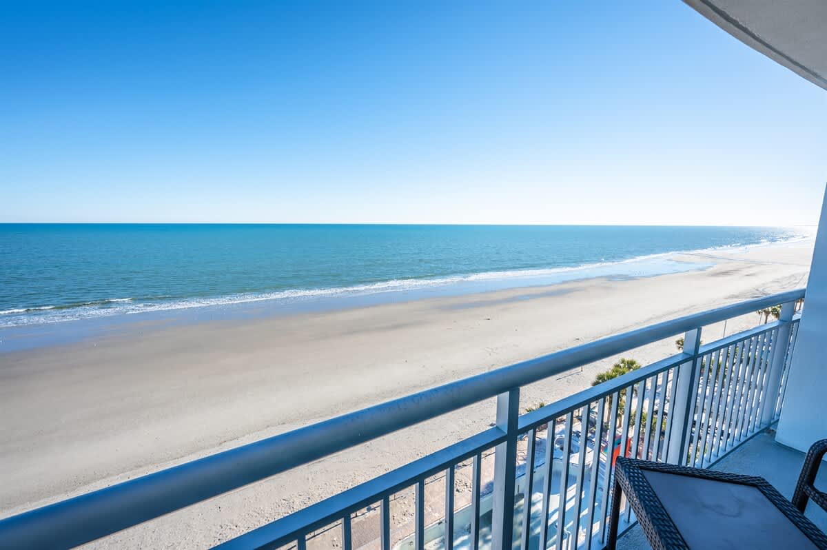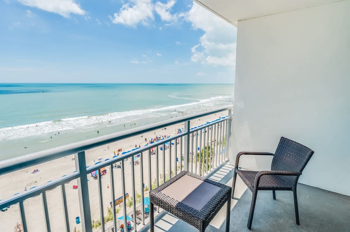 This suite is just steps from the new Myrtle Beach Boardwalk and a short distance from the Family Kingdom Amusement Park and the 2nd Avenue Fishing Pier. It’s a quick drive to attractions such as Broadway at the Beach, Market Common, Ripley’s Aquarium, and the IMAX Theatre. Many popular attractions, restaurants, golf courses, and shopping spots are easily accessible. This suite has a private king bedroom and a second bedroom with two queen beds and its own full bathroom. It offers direct oceanfront views! Linens are provided for all beds, including the master, two queens, and sleeper sofa, as well as towels and washcloths. Complimentary WiFi access is available, and free parking is provided.