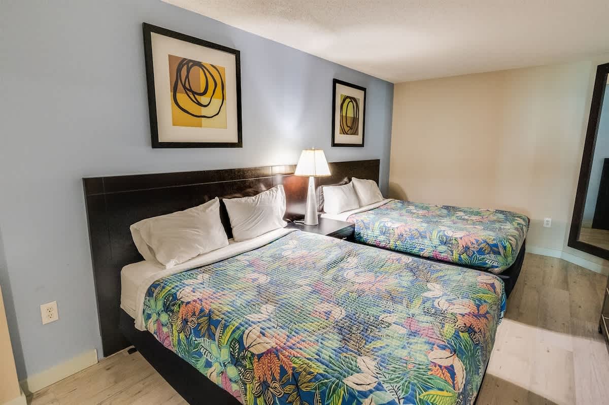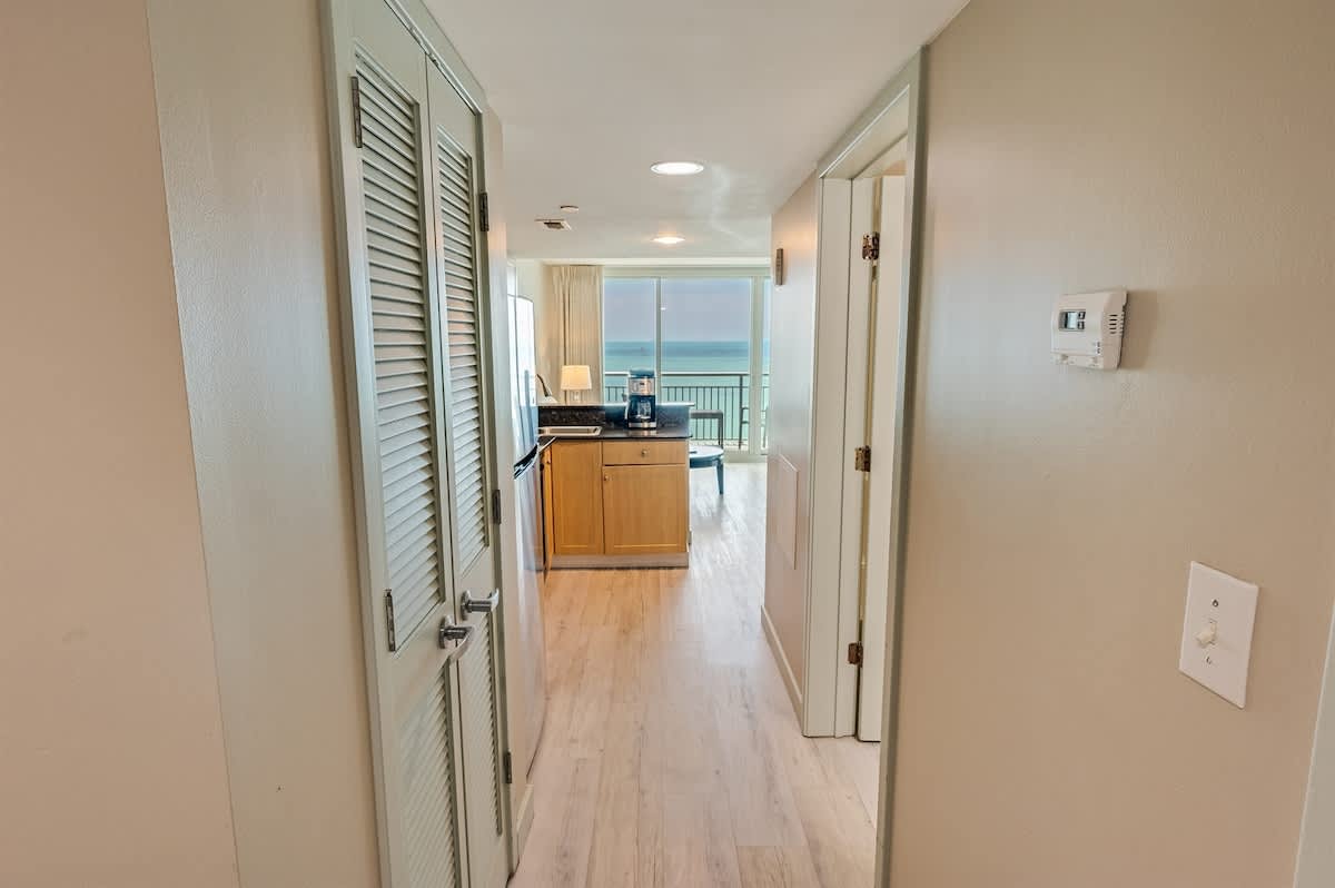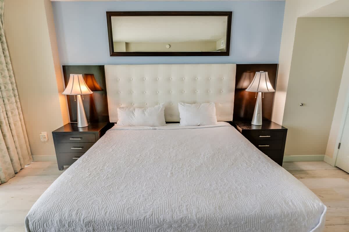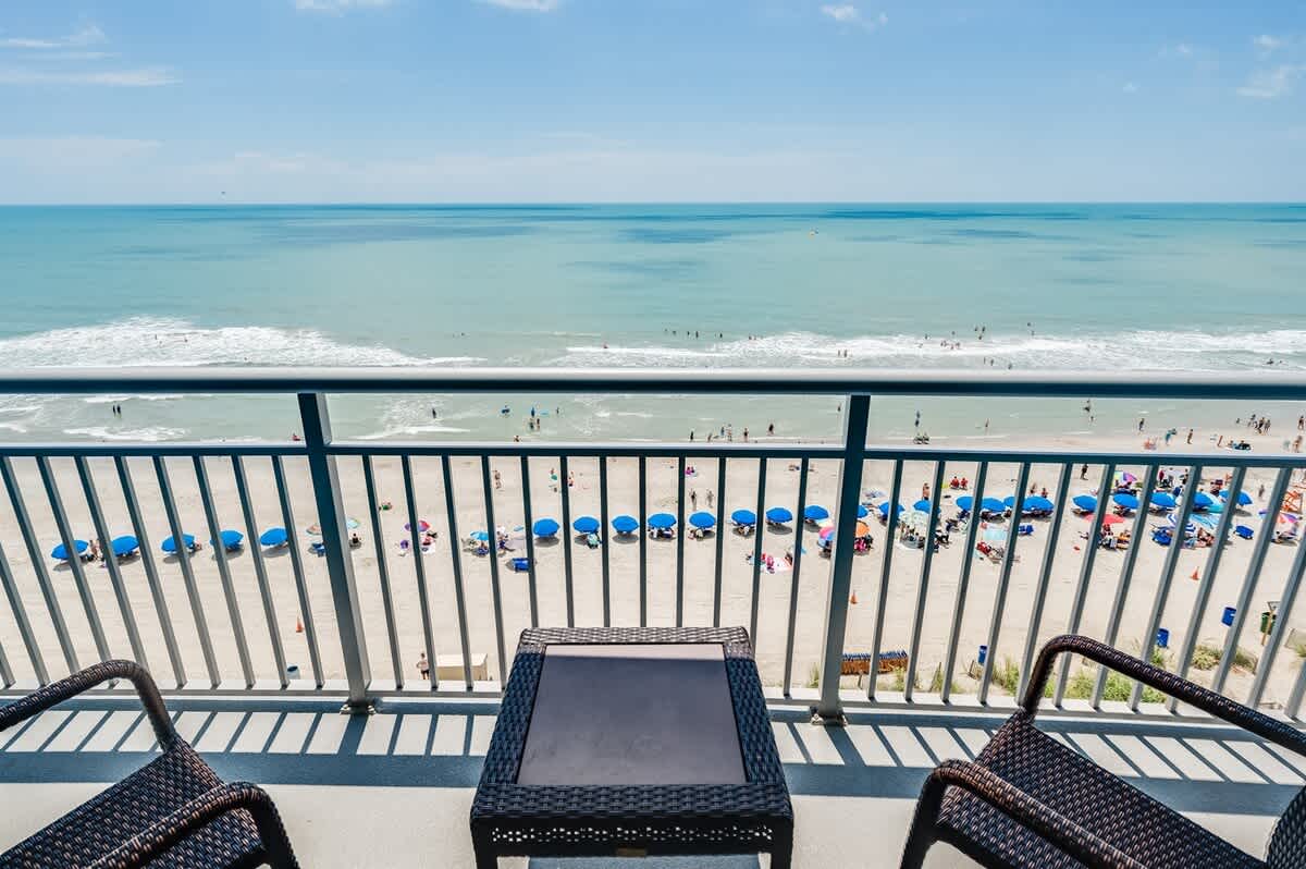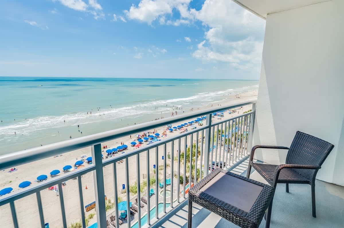 This suite is just steps from the new Myrtle Beach Boardwalk and a short distance from the Family Kingdom Amusement Park and the 2nd Avenue Fishing Pier. It’s a quick drive to attractions such as Broadway at the Beach, Market Common, Ripley’s Aquarium, and the IMAX Theatre. Many popular attractions, restaurants, golf courses, and shopping spots are easily accessible. This suite has a private king bedroom and a second bedroom with two queen beds and its own full bathroom. It offers direct oceanfront views! Linens are provided for all beds, including the master, two queens, and sleeper sofa, as well as towels and washcloths. Complimentary WiFi access is available, and free parking is provided.