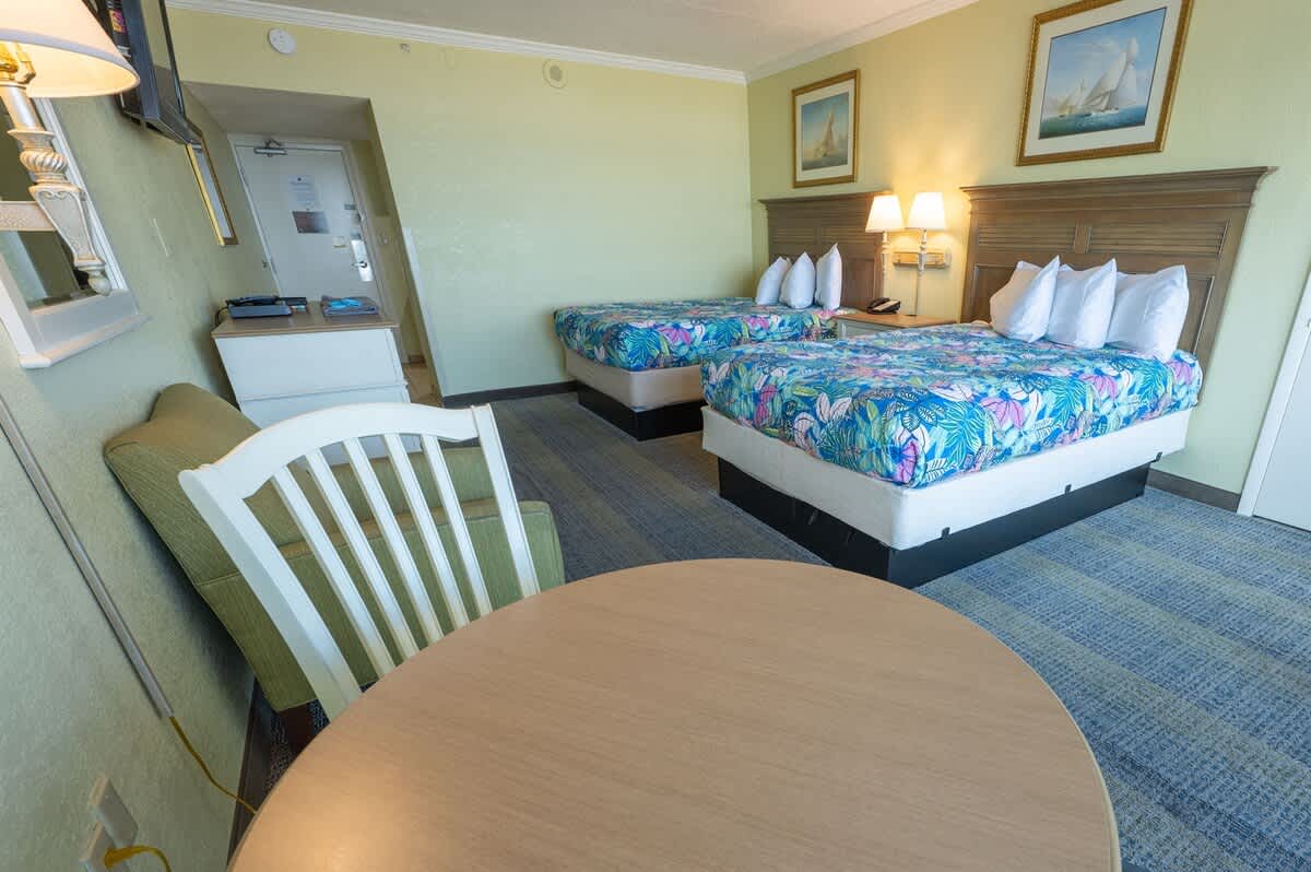 AMENITIES: Starting 9/1/21, guests will not have access to the onsite restaurants (including the tiki bar and coffee shop), laundry facility, kids’ slide area, or fitness center. All other water features are available, except the indoor pool in the Schooner building.