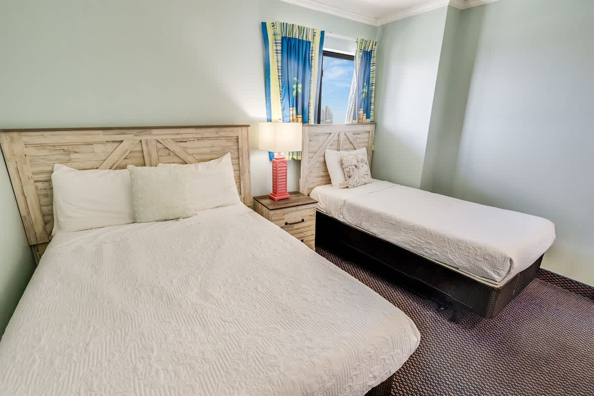 * 1 King, 2 Full Beds, Sleeps up to 6 sheets/towels provided