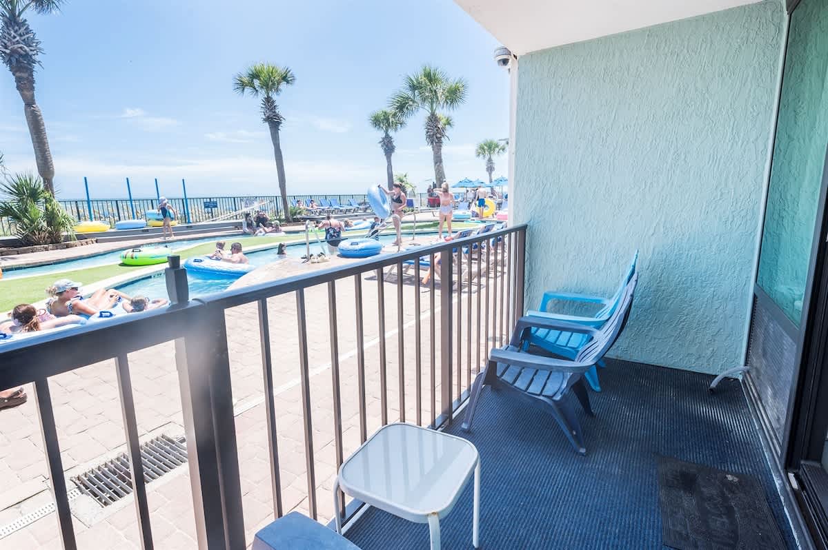 Our beachfront condo features 1 Queen Bed, 1 Sofa Bed, a private bathroom, full-sized appliances. This beachfront condo sleeps 4. Enjoy the morning sunrise on your patio with a direct view of the beautiful ocean. Amenities include, but are not limited to: a large kiddie fun activity pool area, 3 lazy rivers, 7 hot tubs, 2 outdoor pools, 1 indoor pool, and more! Great available unit in a fantastic resort!