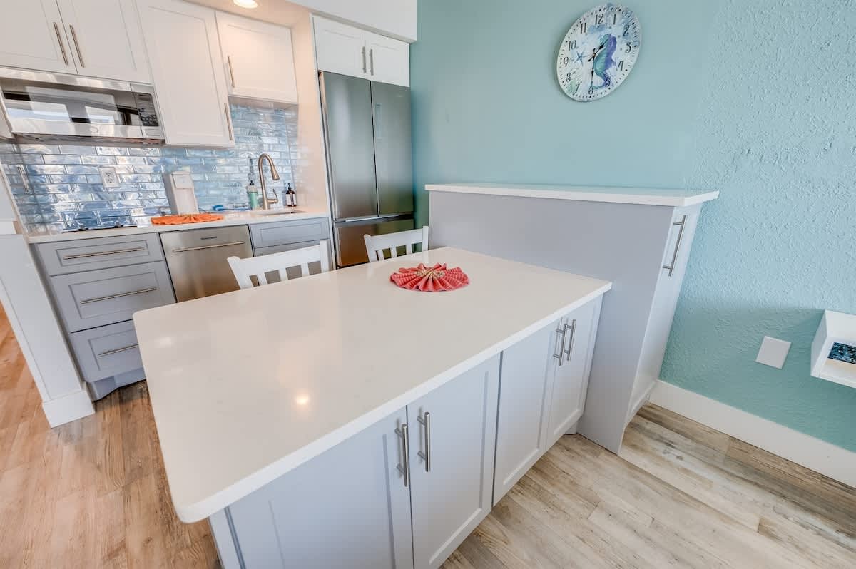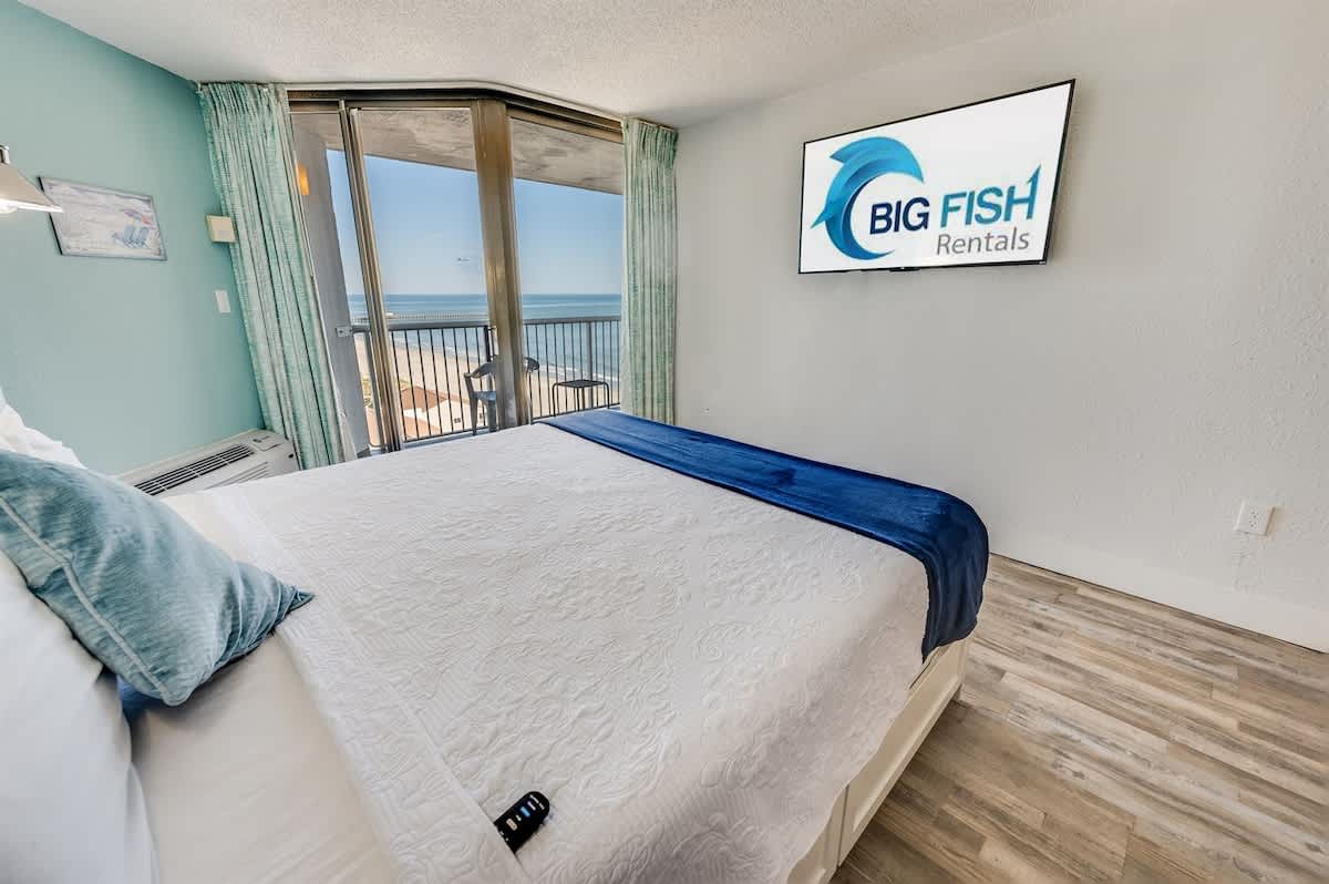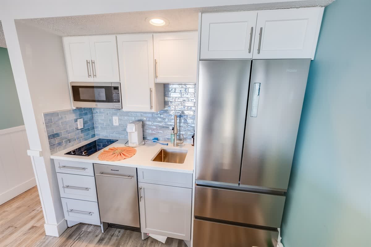 Once you enter through a foyer, pass through the kitchen, and step into the ocean-view bedroom that leads to the balcony. The balcony offers amazing ocean views, making it the perfect setting for your morning coffee or evening cocktails. The unit is equipped with a stove, microwave, and fridge for your convenience.