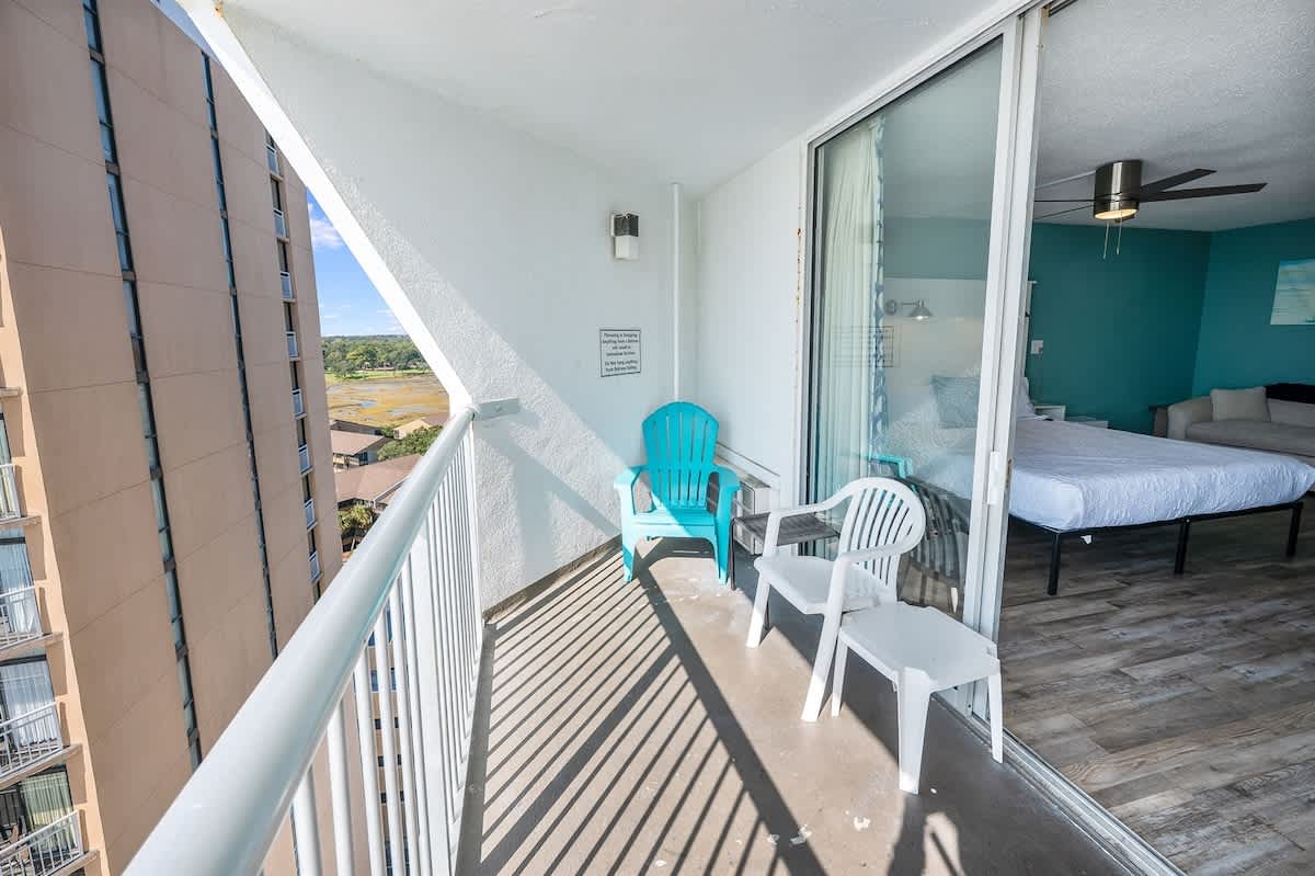 – Large private balcony with 180-degree views!