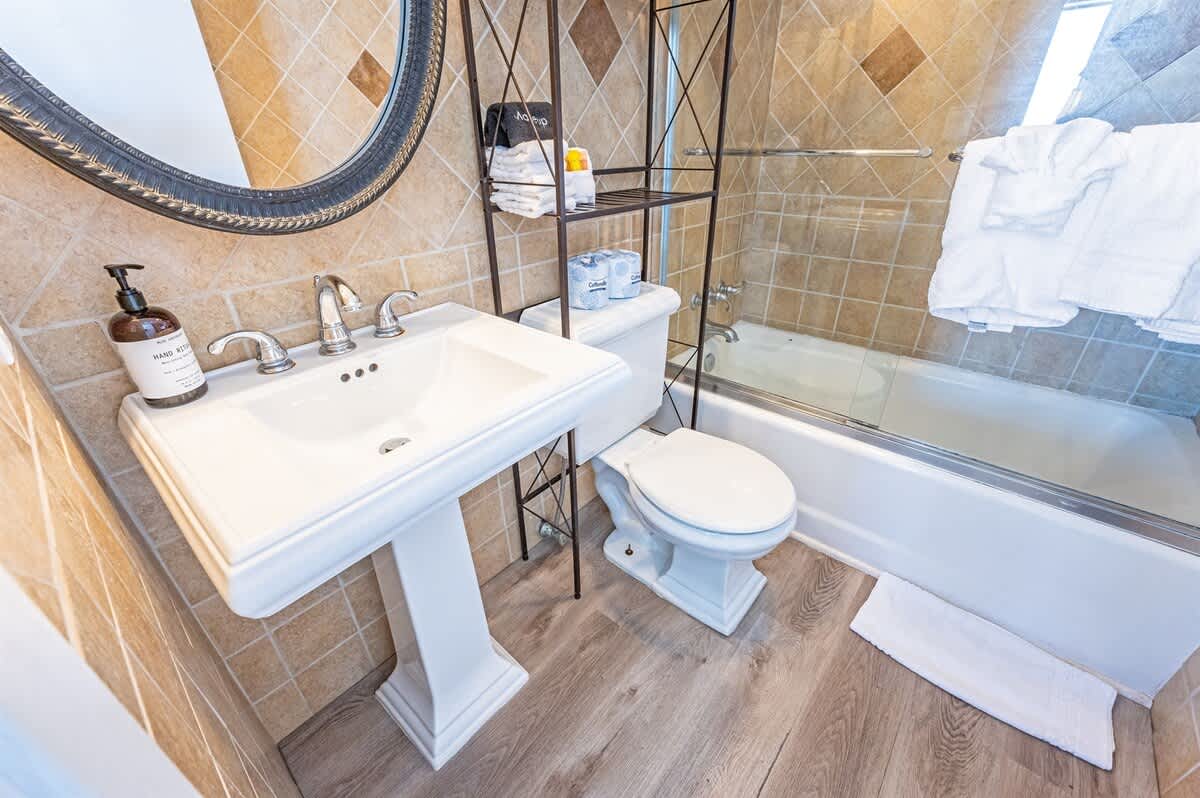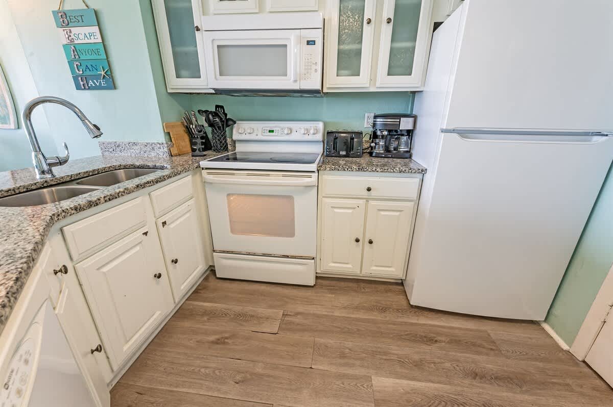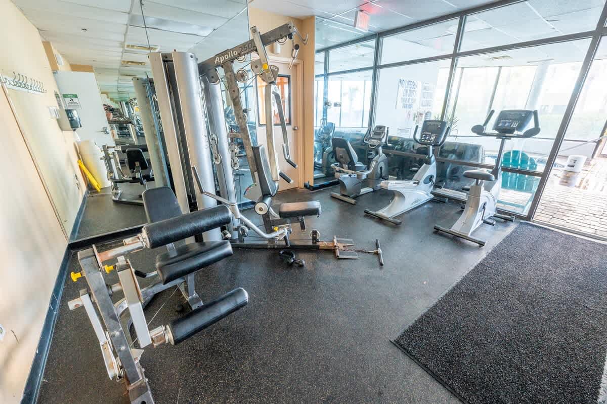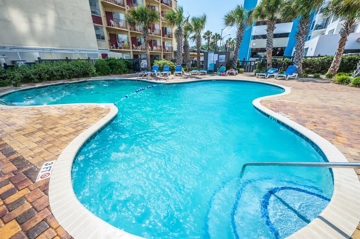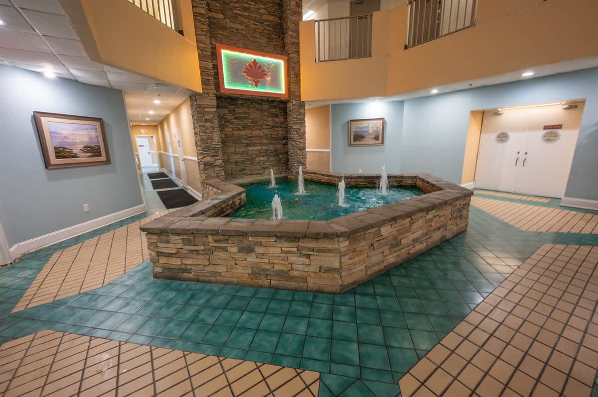 This two-bedroom, two-bathroom condo on the 22nd floor of the Palace Resort has a private balcony and is uniquely located in the resort. It has a large living room area, a queen bed, a twin bed, and a full bed, and can sleep up to five guests. The condo has beautiful flooring and decor, granite countertops, and a fully equipped kitchen with a table. It also has high-speed Wi-Fi, a high standard of cleaning, and free onsite parking. The sofa is not a sleeper sofa.