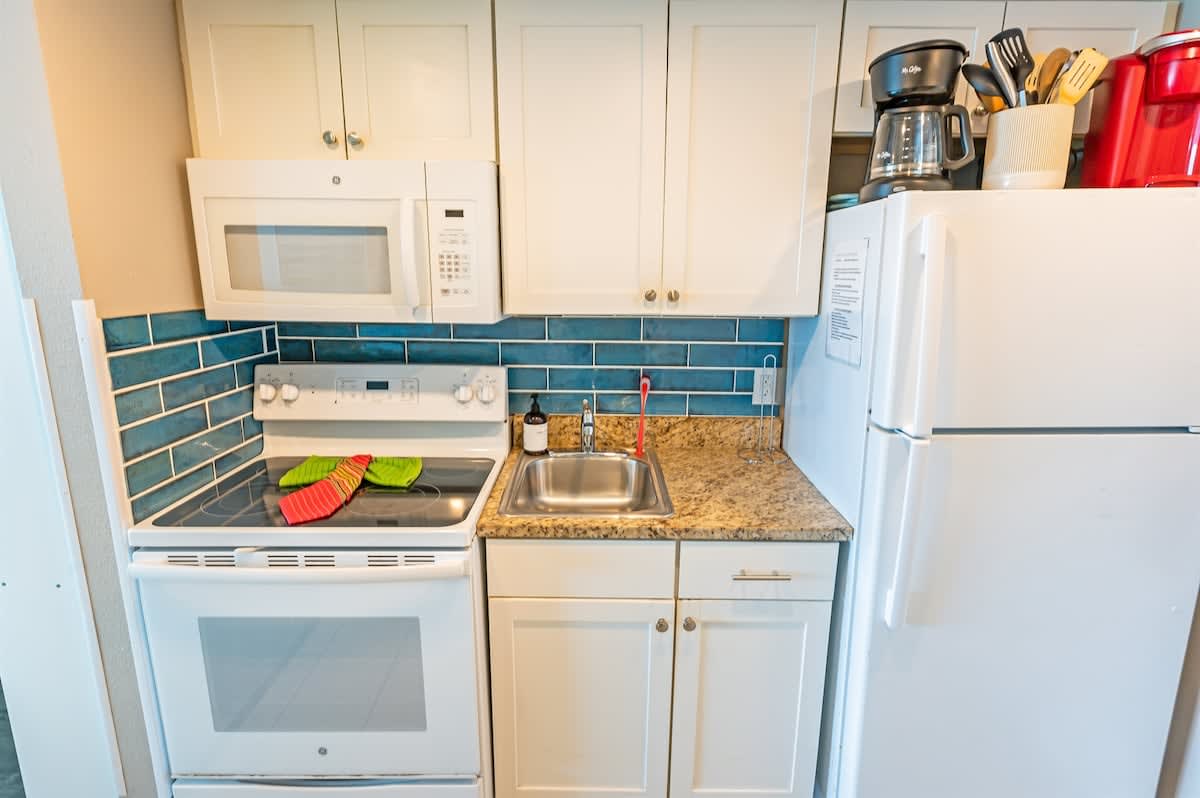 – Remodeled with New 65″ Samsung TV, Full-Sized Refrigerator, Microwave, and Stove/Oven