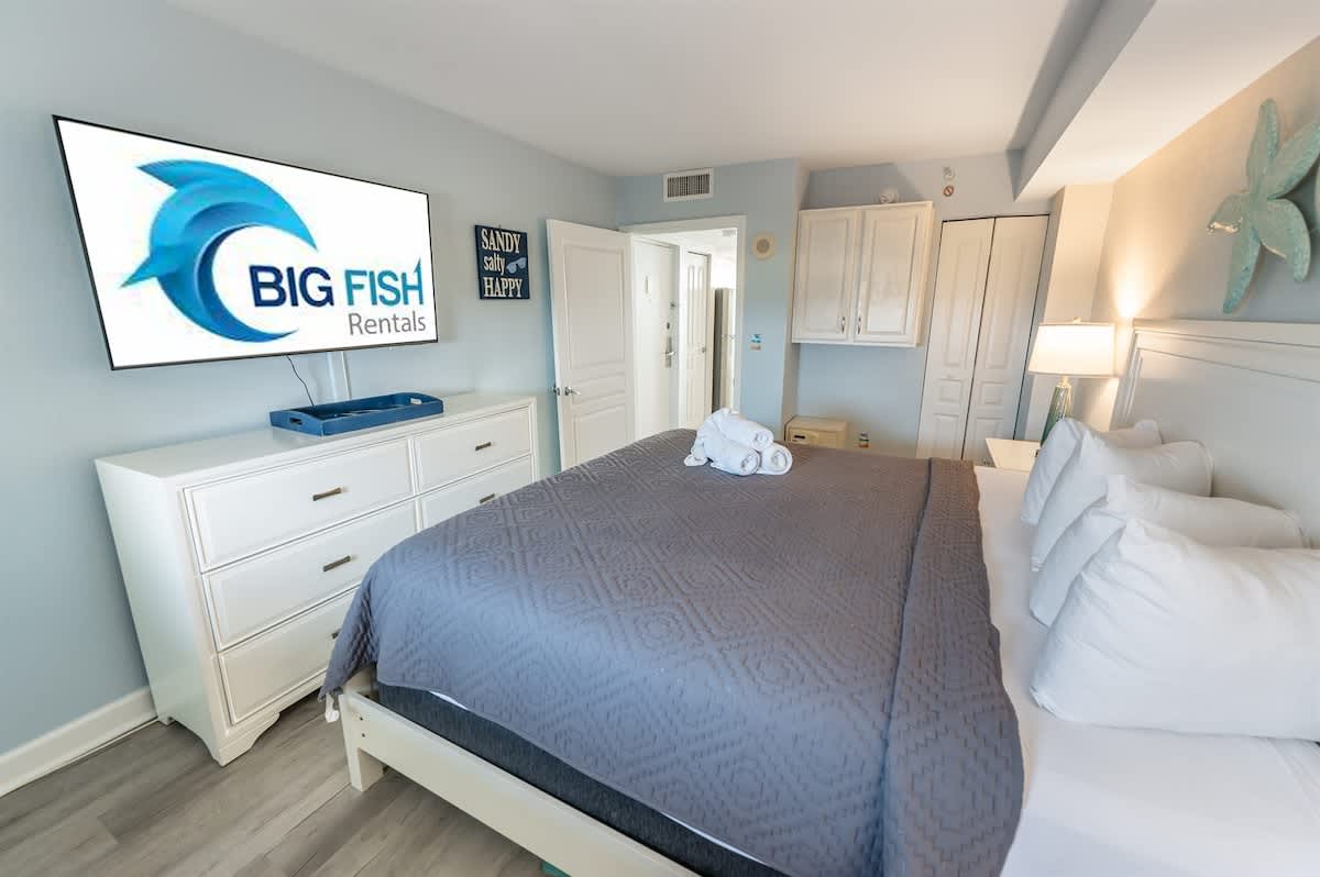 * 1 King Bed, 1 Sleeper Sofa, 1 Murphy Bed, Sleeps up to 6, sheets provided