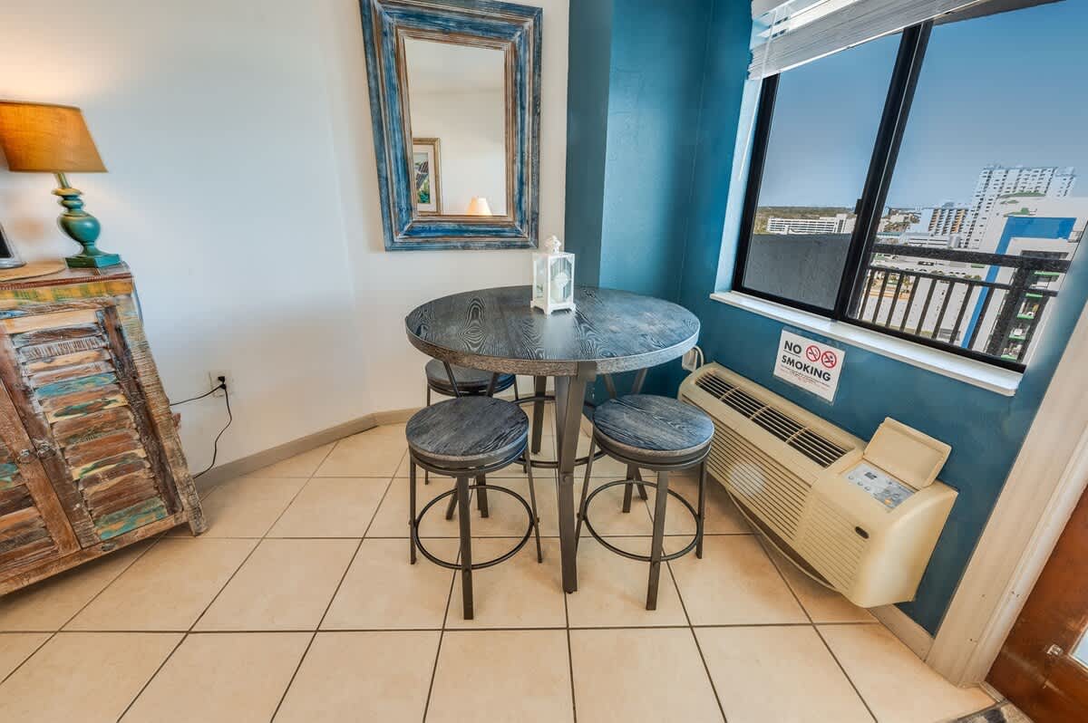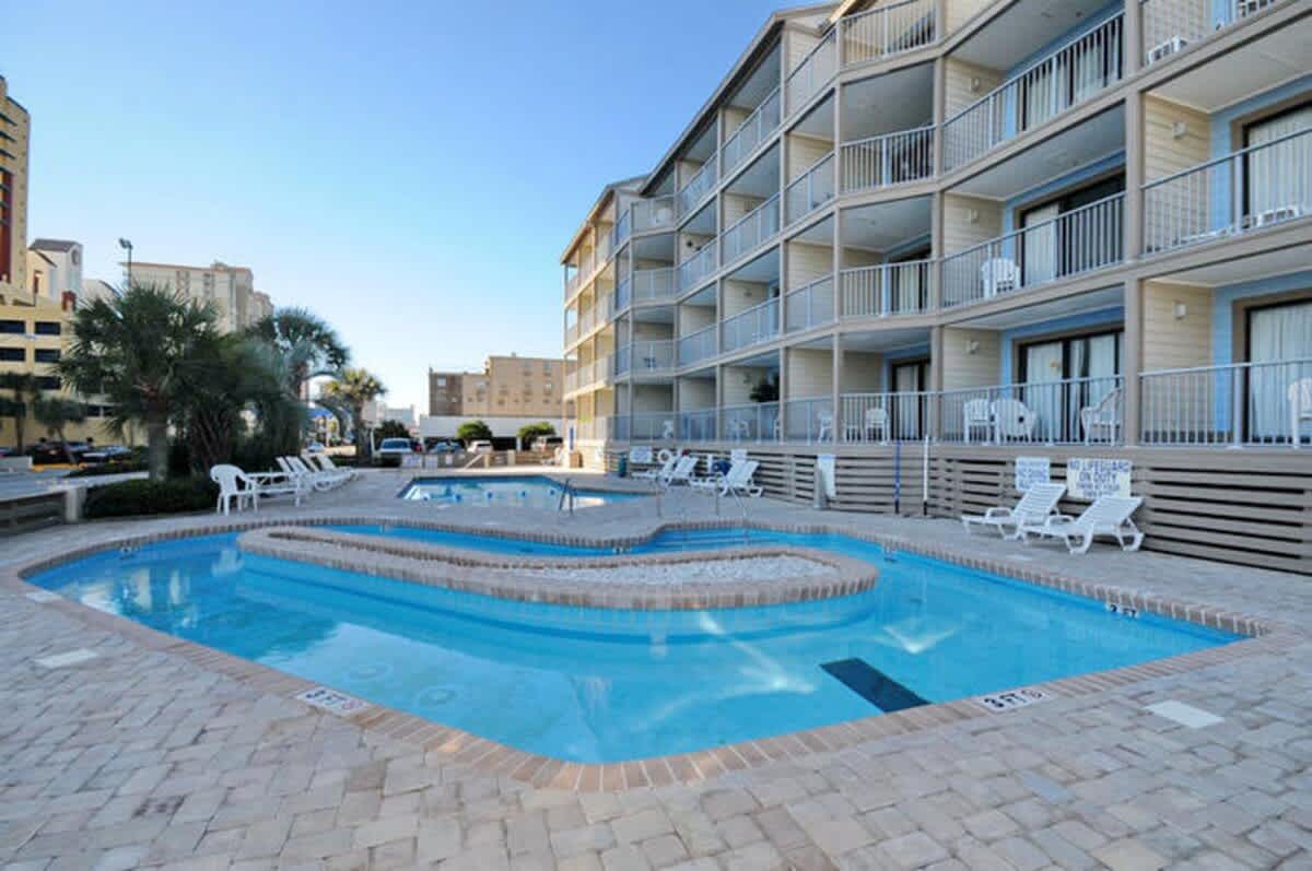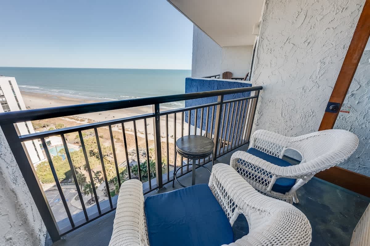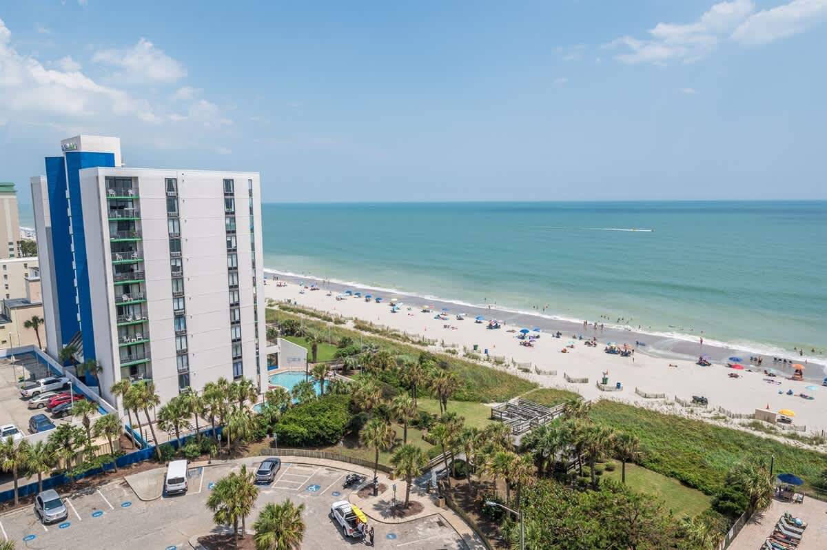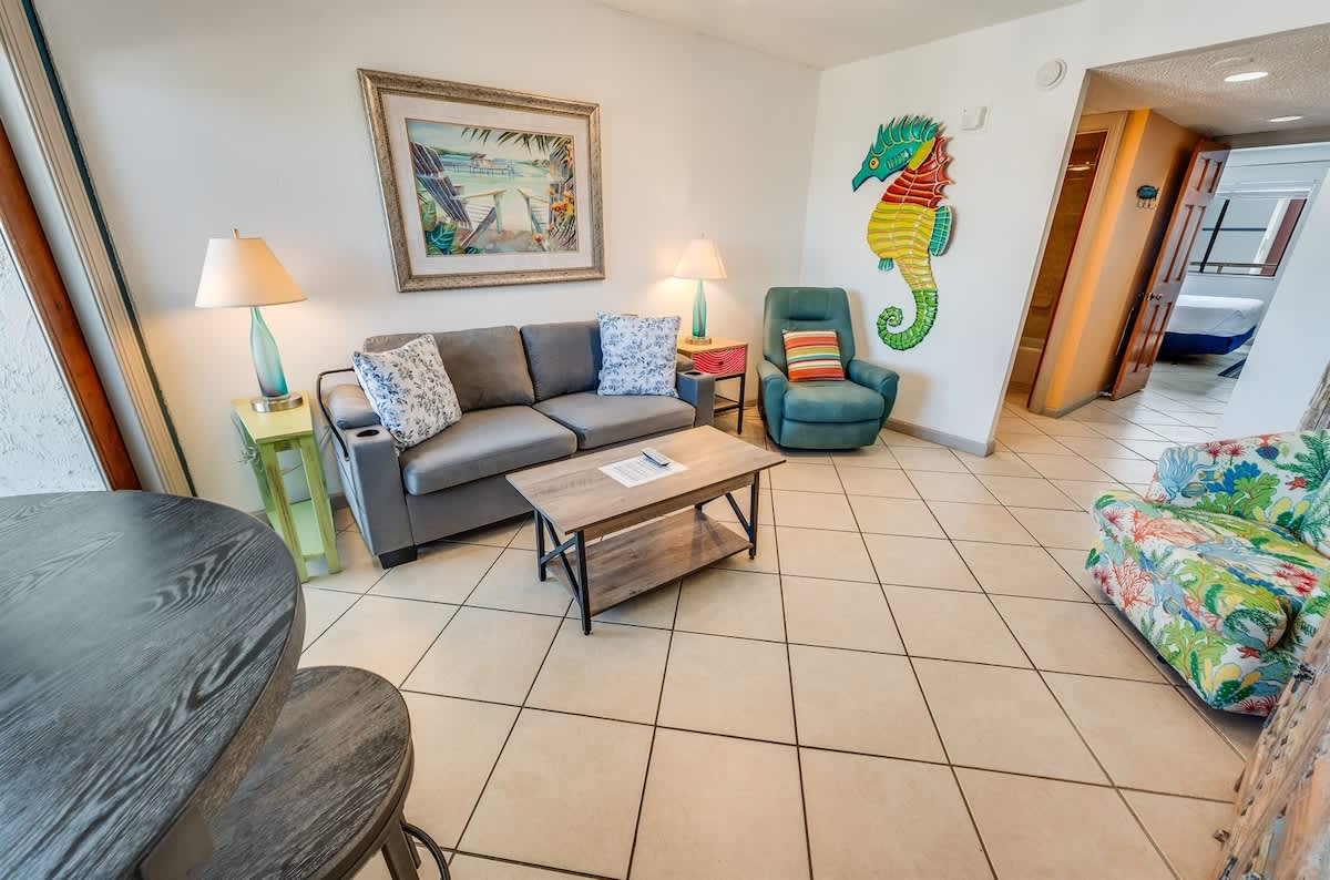 Savor a fully furnished kitchen with a cooking oven, a kid-sized sleeper sofa, and an opulent king-sized bed! We can’t wait to have you visit our location in Myrtle Beach, where days of relaxing on the powder-soft white sand await!
