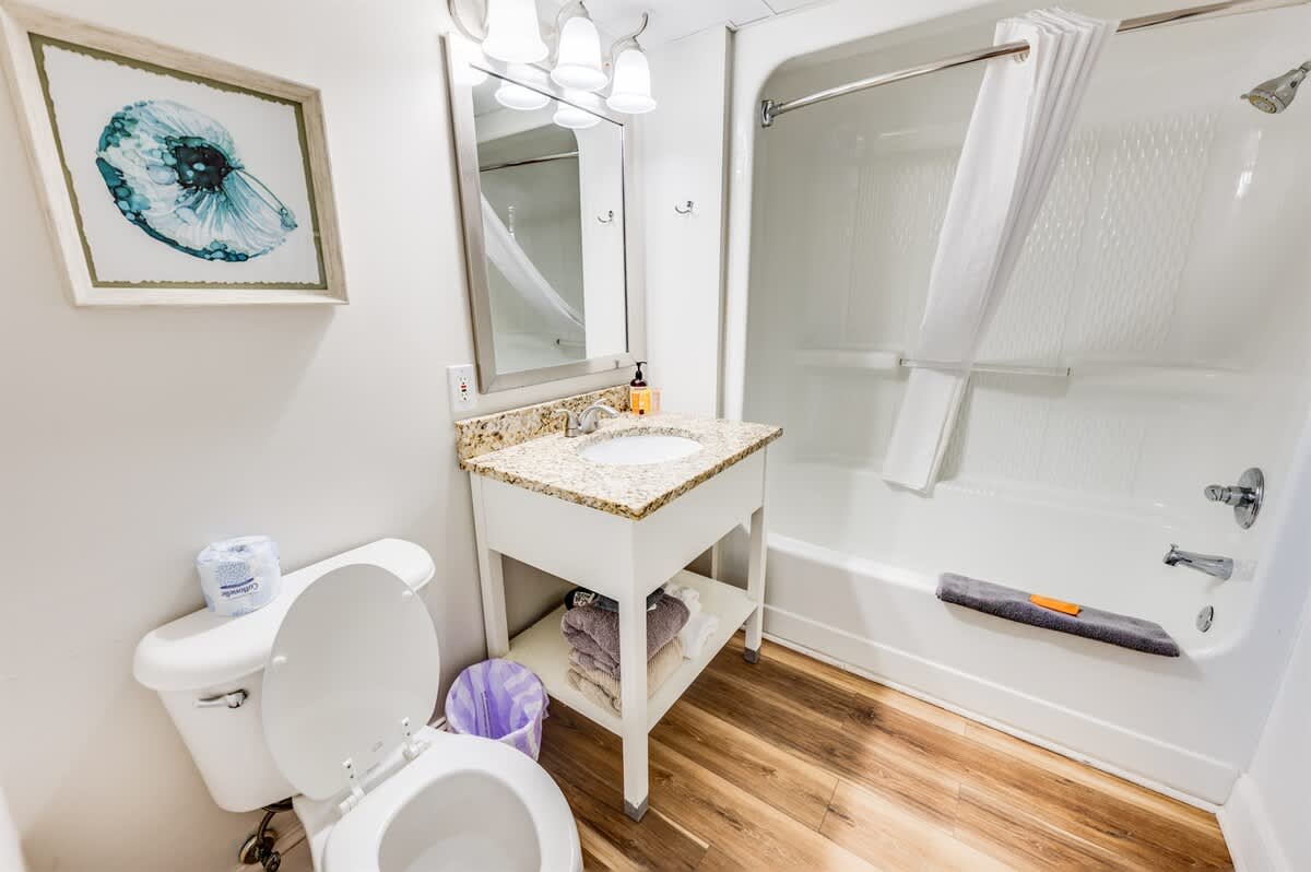 Camelot’s indoor pavilion with a glass front and potted plants contain a lazy river, a free-form pool, a small toddler pool, and a spa tub. Stroll down the ocean boulevard to enjoy the many restaurants and shops in the area! AND BEST OF ALL FREE WIFI!