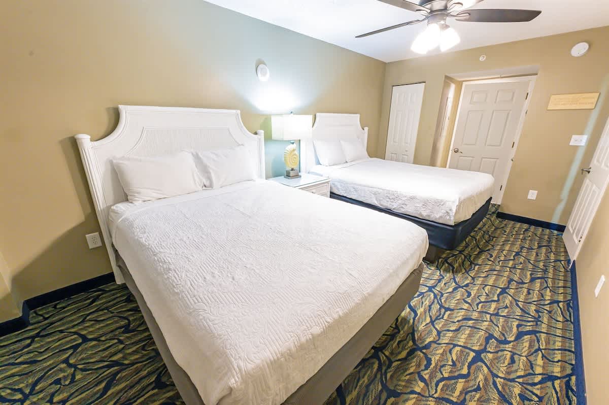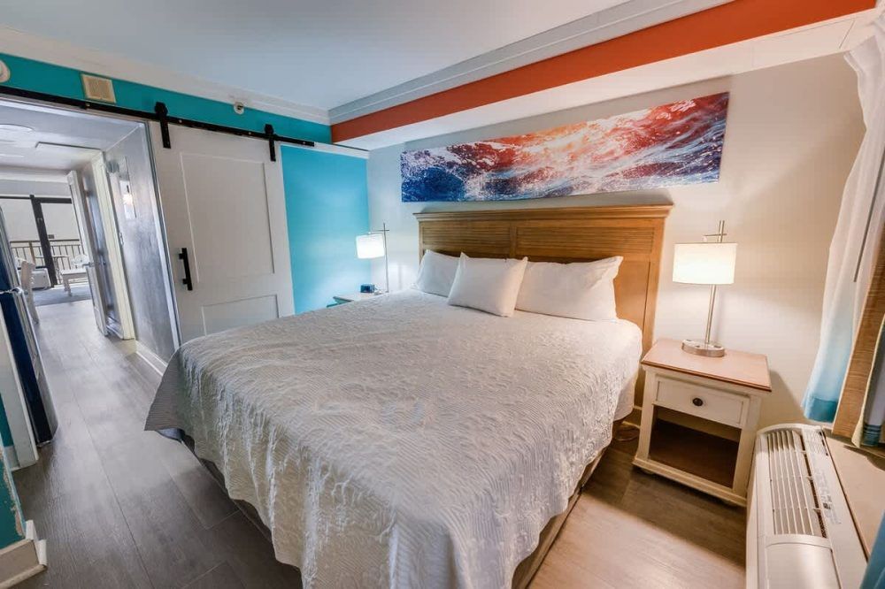 – 1 king bed, 4 queens, 1 sleeper sofa, sleeps up to 12, with sheets provided