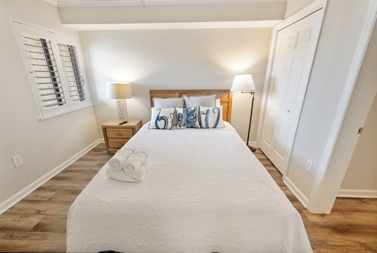 * 1 King Bed (Overlooking Ocean), 1 Queen Bed, and 1 Queen Murphy Bed in the 3rd bedroom, Sleeps up to 6, sheets provided.