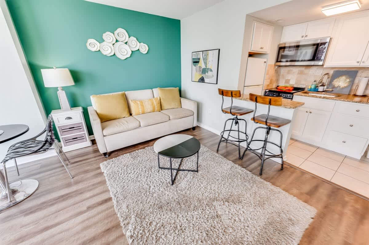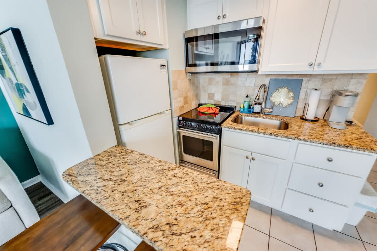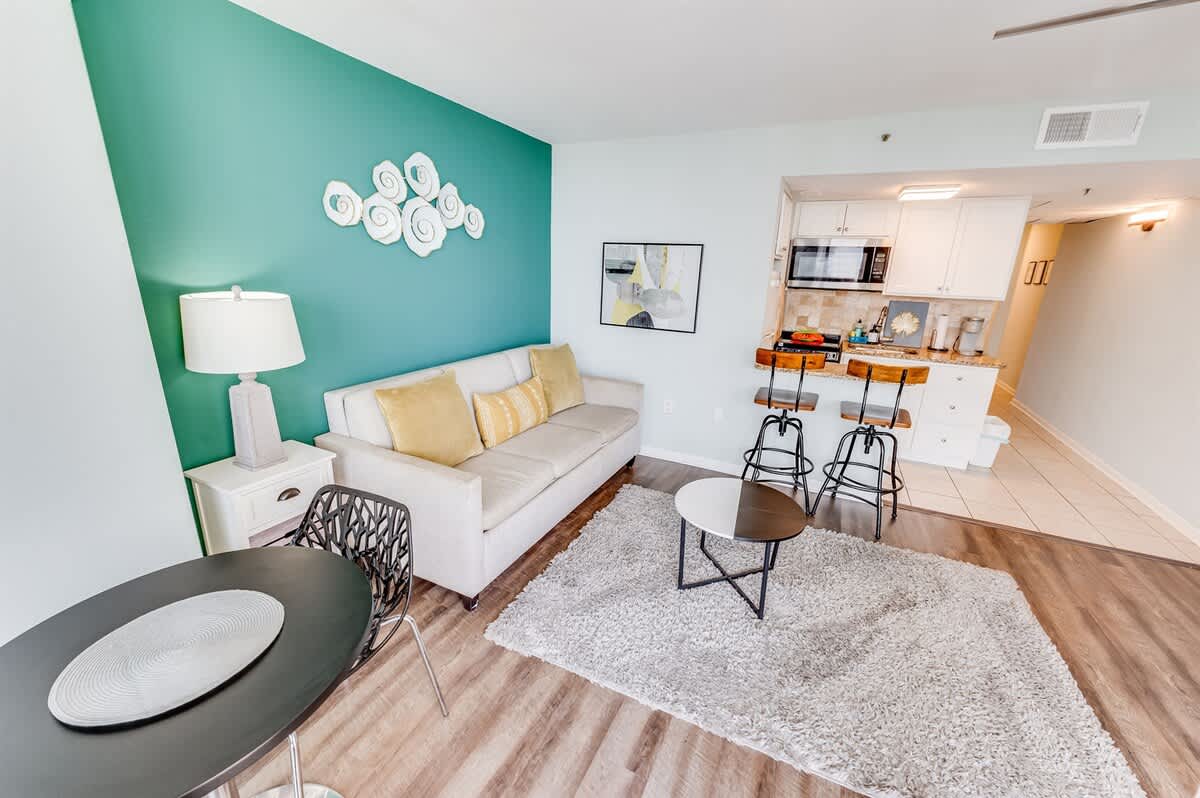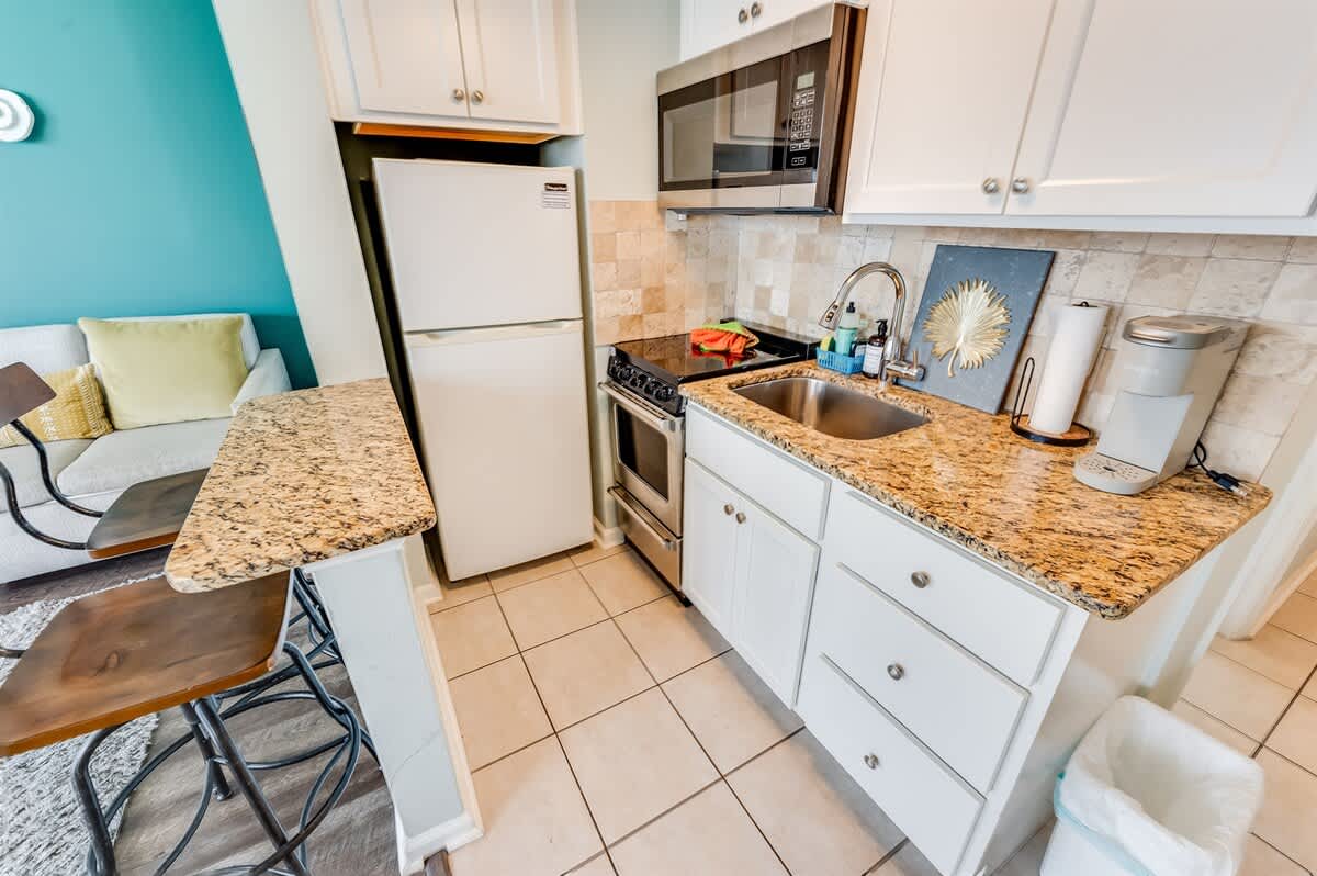 * 1 King Bed in Bedroom and 1 Sleeper Sofa, Sleeps up to 4, sheets provided