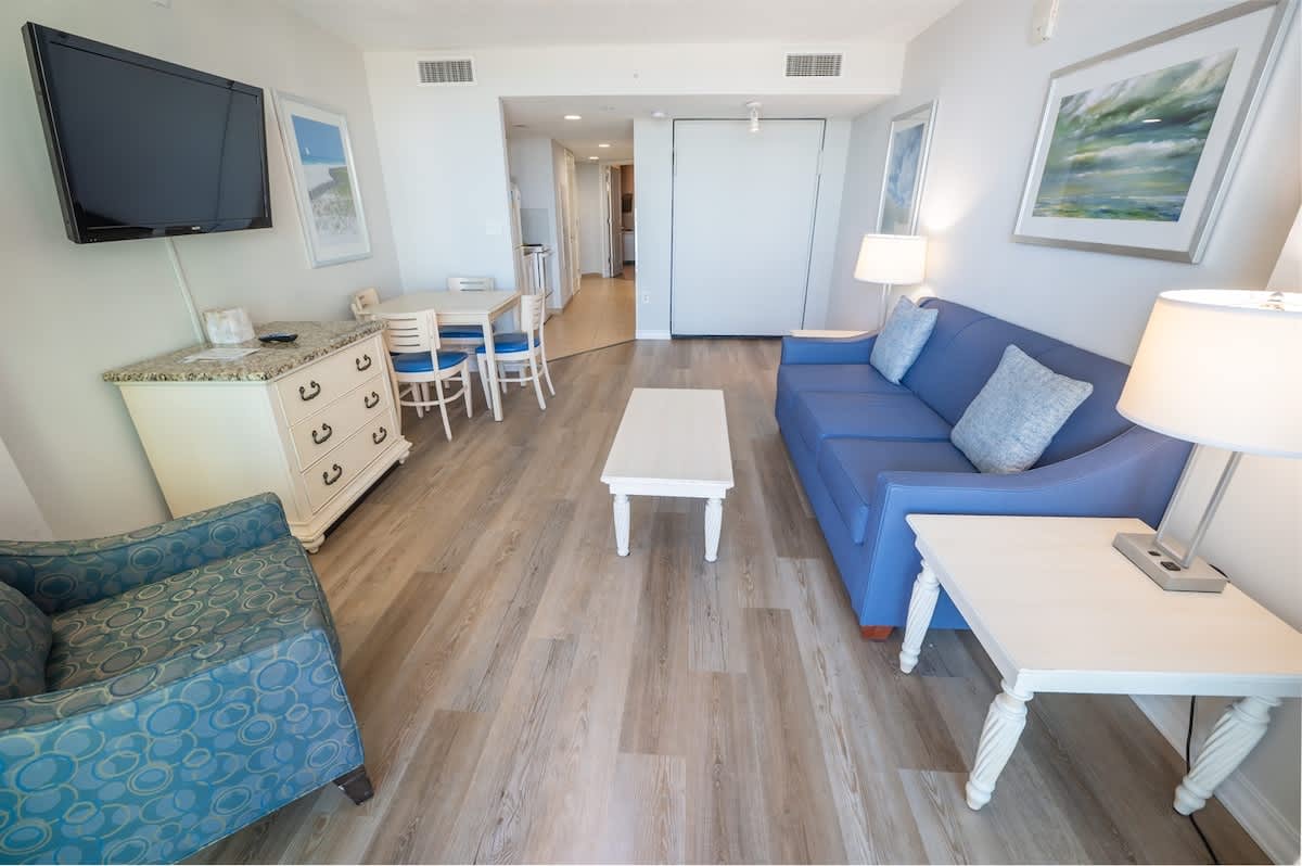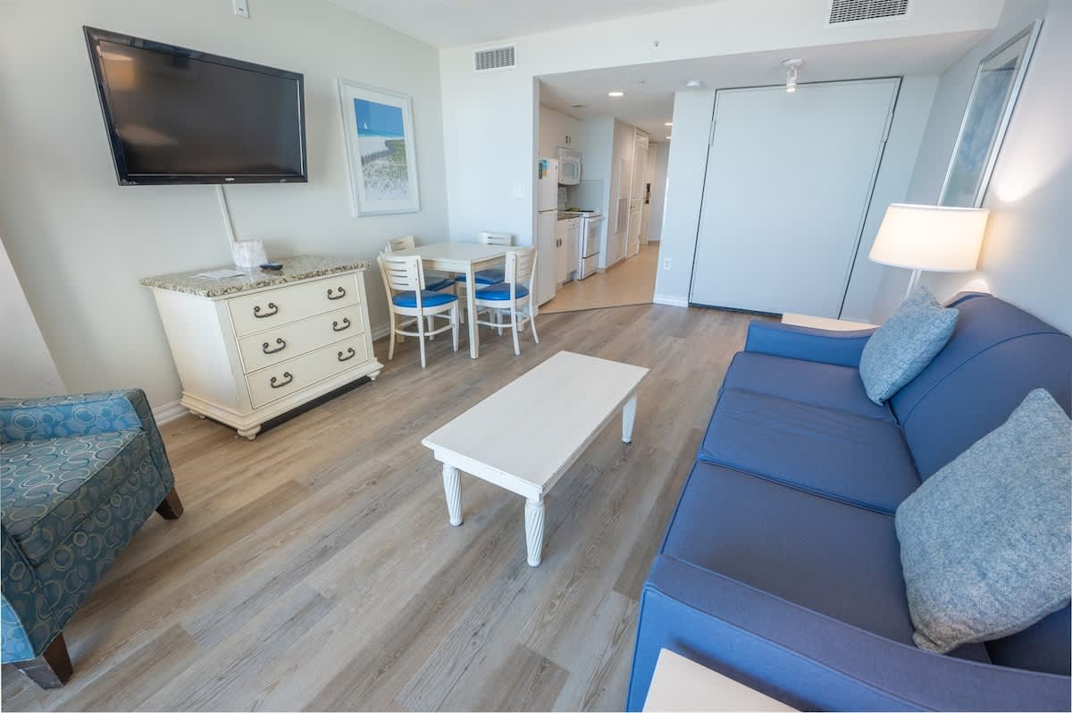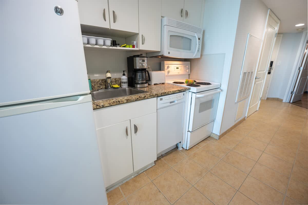 Amazing direct ocean views from the balcony are the perfect setting for your morning coffee or evening cocktails. Enjoy the convenience of your own kitchen featuring a full-sized fridge, microwave, and HDTVs