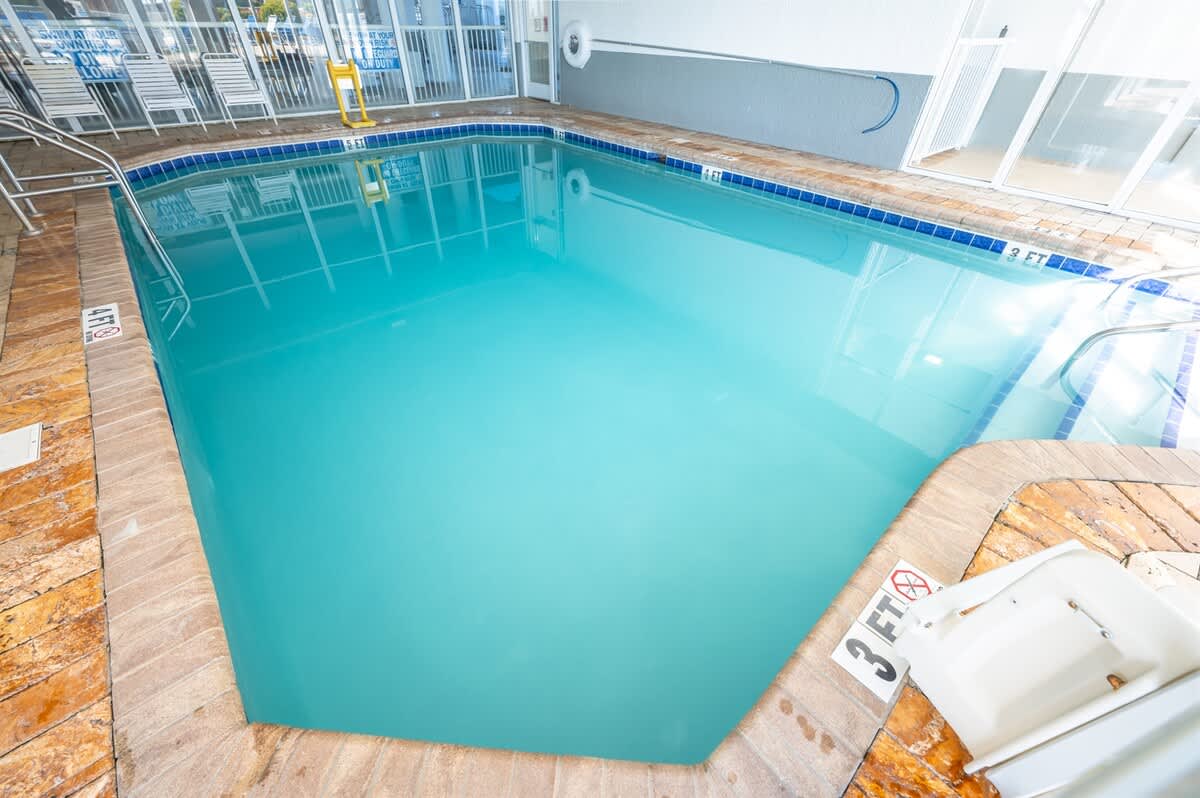 NOTE: Please note that only the indoor pool is heated; the Lazy River is outside the glass enclosures and is not heated. Outside Pool Heaters are turned on April 1st.
