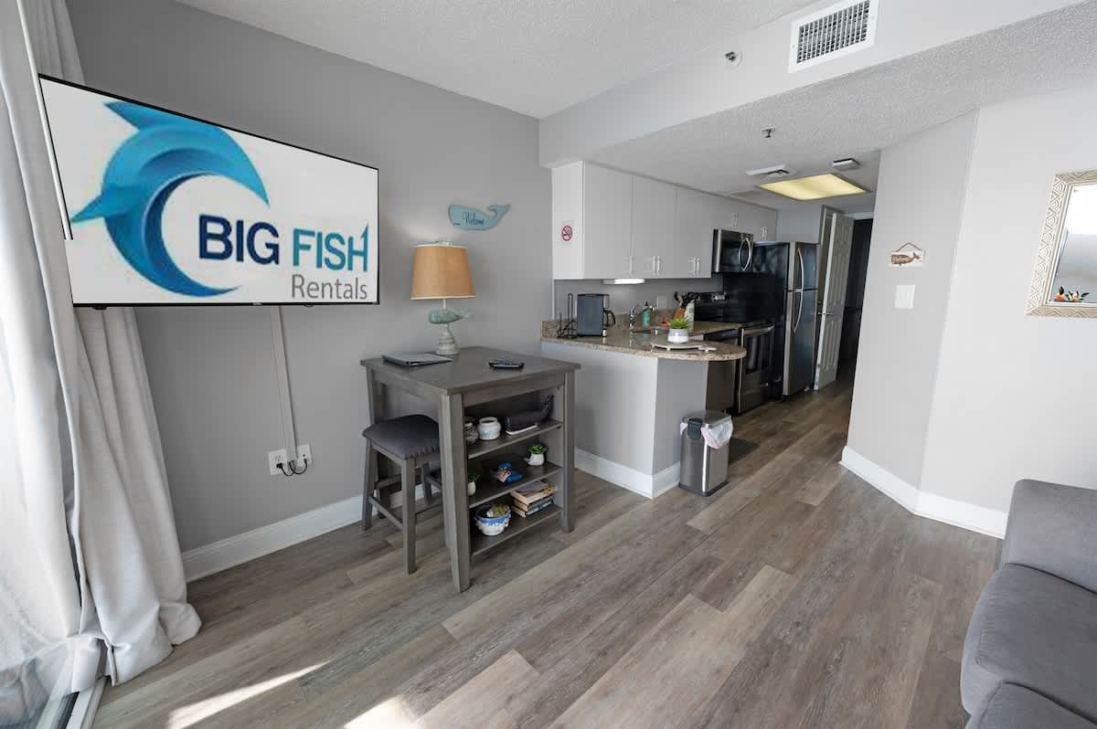 Breathtaking ocean vistas from the balcony create the ideal backdrop for your morning coffee or evening cocktails. Revel in the convenience of a fully equipped kitchen, complete with a full-sized fridge, microwave, and HDTV.