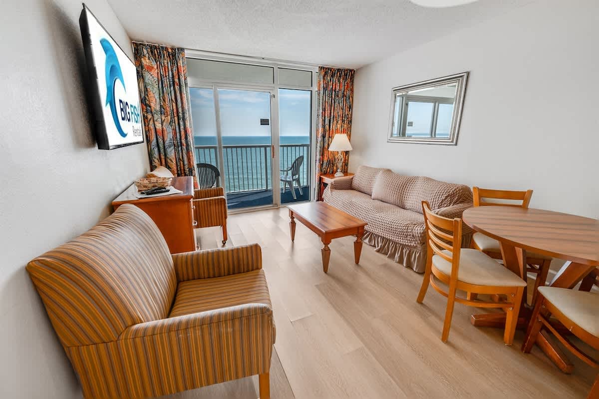Amazing ocean views from the balcony are the perfect setting for your morning coffee or evening cocktails. Enjoy the convenience of your own kitchen featuring a full-sized fridge, microwave, and HDTV