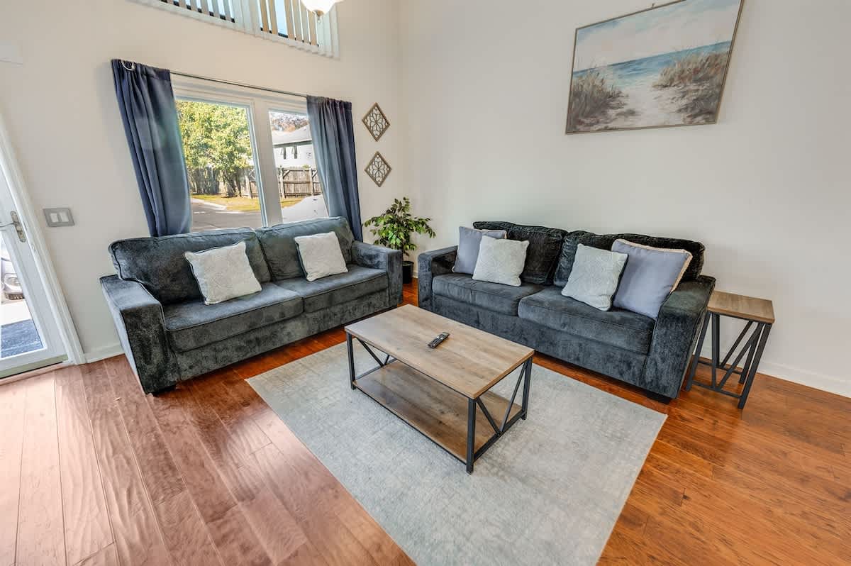 * 1 King Bed, 2 Queen Beds, and Sofa Bed. Sleeps up to 8, sheets provided