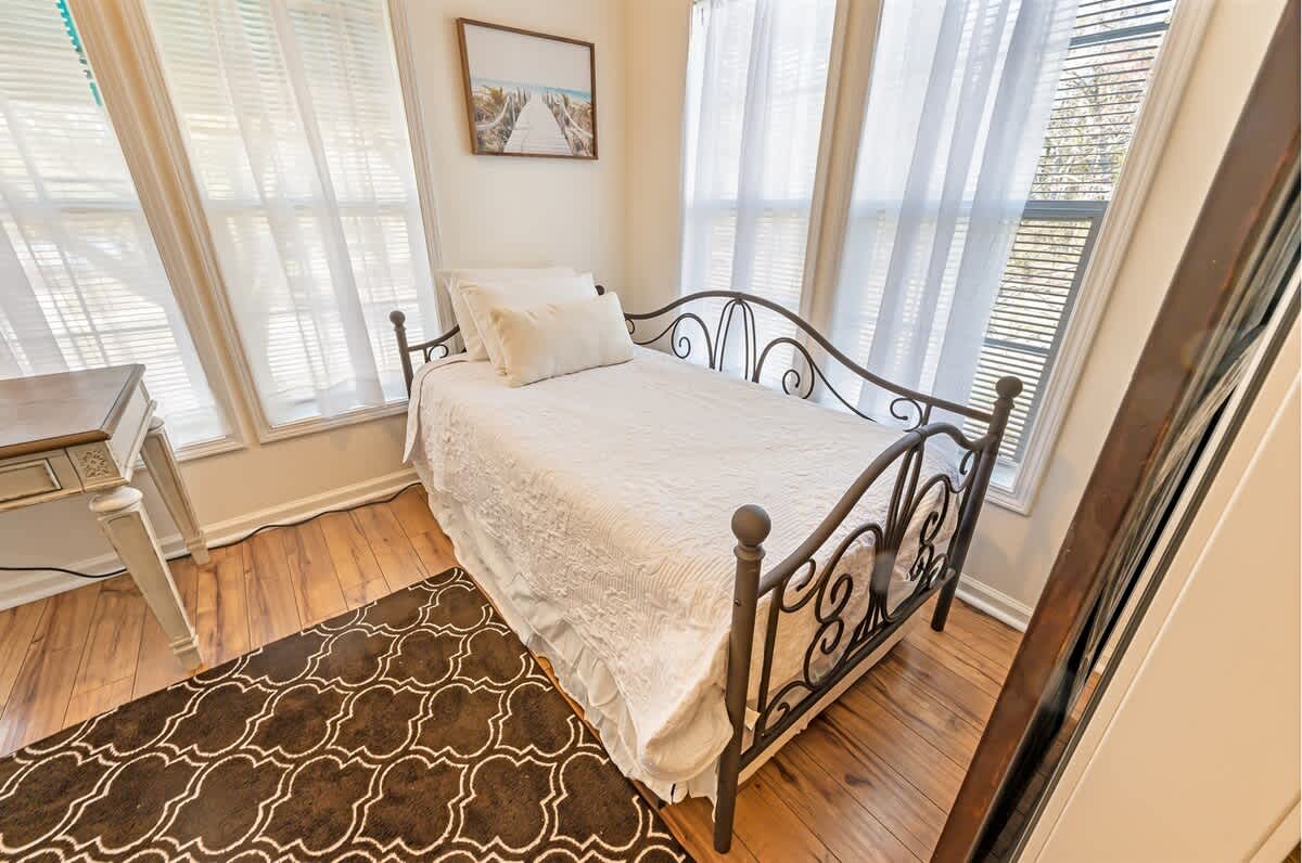 * 1 King Bed, 1 Twin Day Bed with Pull out Twin Bed, Sleeps up to 4, sheets provided
