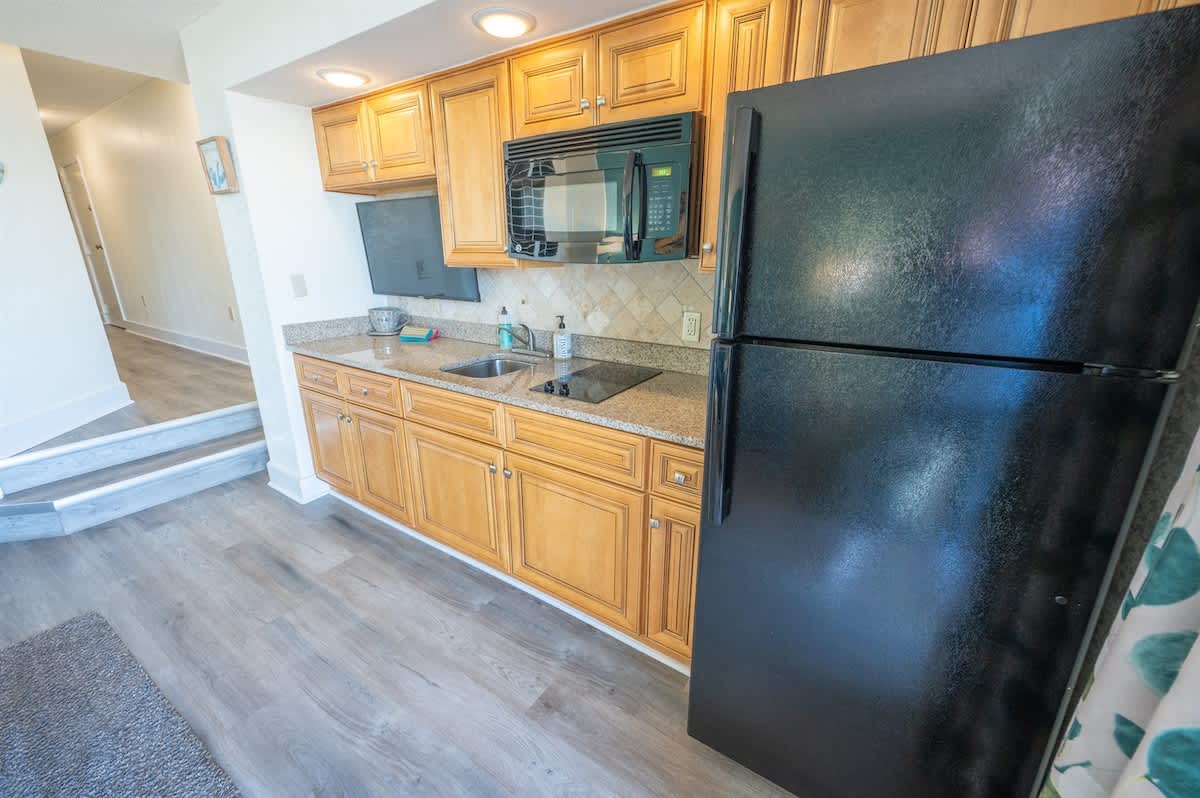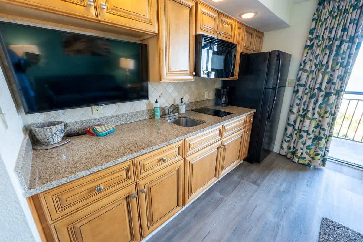 Amazing ocean views from the balcony are the perfect setting for your morning coffee or evening cocktails. Enjoy the convenience of your own kitchen featuring a full-sized fridge, microwave, and HDTV