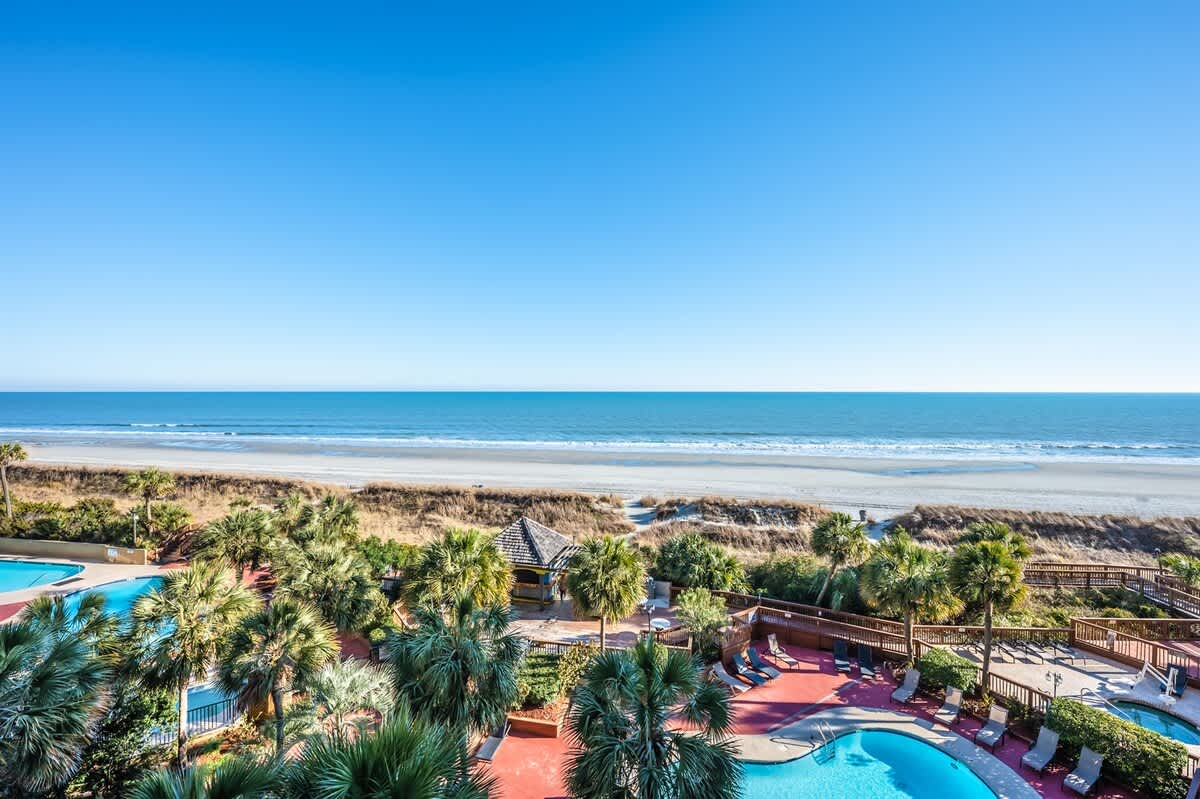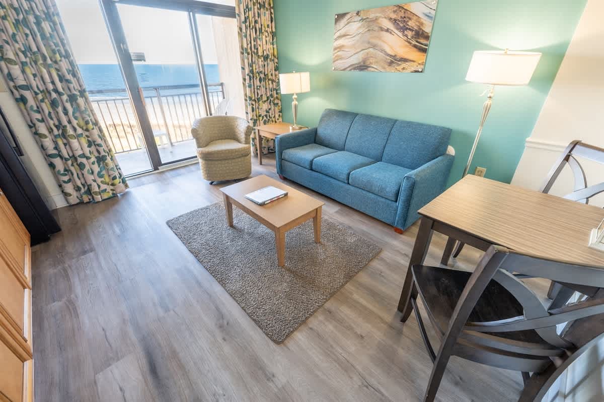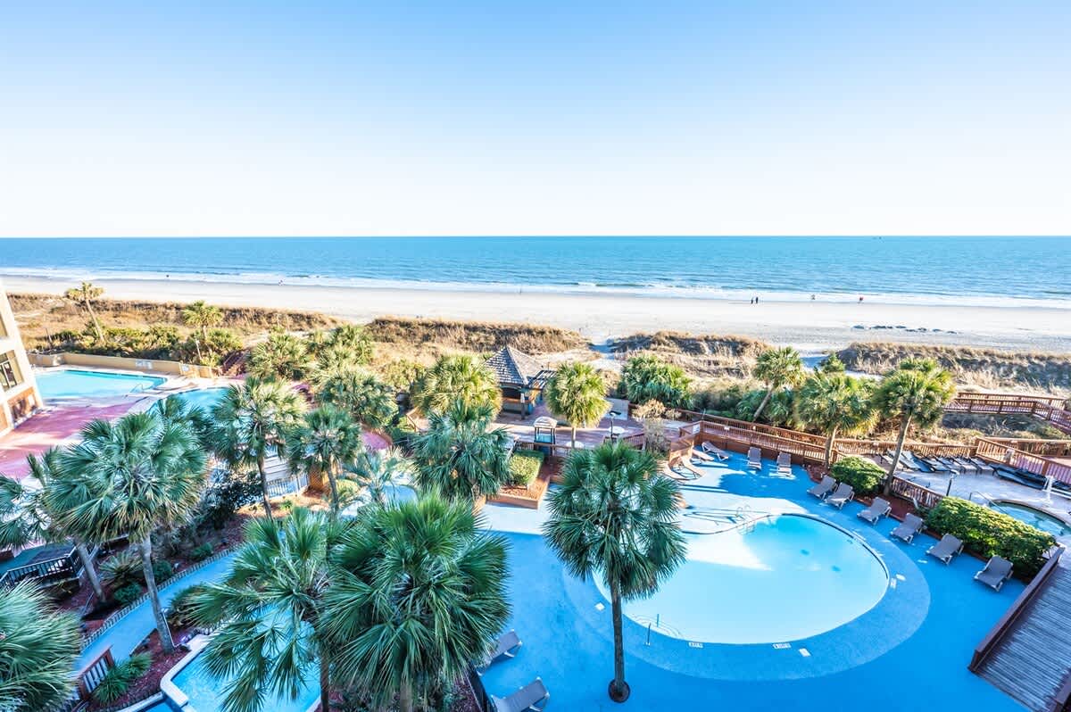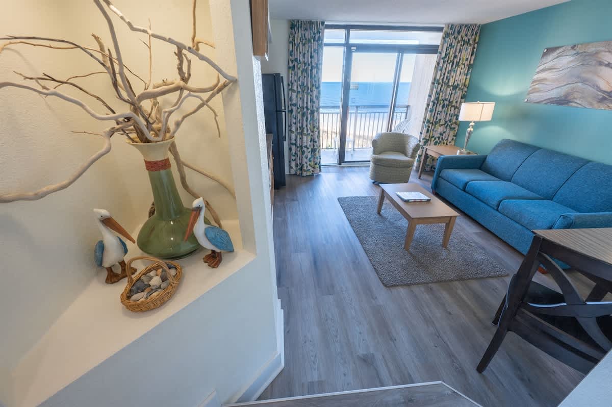 Abundant amenities await you at this beachfront resort. Features include both indoor and outdoor whirlpools, lazy river ride, spacious pool deck, Tiki bar, and social areas, Oceanfront pools. Indoor pools. Children’s Interactive splash and play area. AND BEST OF ALL FREE WIFI. Close to Barefoot Landing and House of Blues, Alabama Theatre. Beach Cove Resort in North Myrtle Beach is within walking distance to Barefoot Landing, a variety of restaurants, entertainment, shopping, and the new Duplin Winery. Perfect for couples or small families, it features a kitchen/living room and bedroom. Sleeps up to six persons and is approximately 630 SF. The resort offers stellar amenities with spectacular views of the Atlantic Ocean. Oceanfront pool deck, four indoor and outdoor pools, three whirlpools, Lazy River. Come and see what awaits you at this oceanfront resort unit.