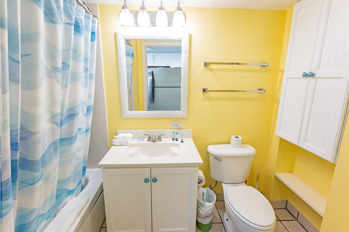 This condo features a master bedroom with a cozy and stylish layout, perfect for relaxation. It provides comfortable sleeping arrangements for up to 6 guests across the available beds. There is a single, well-appointed bathroom offering all necessary amenities including a bathtub and hot water. Bed linens, extra pillows, and blankets are provided for your comfort.