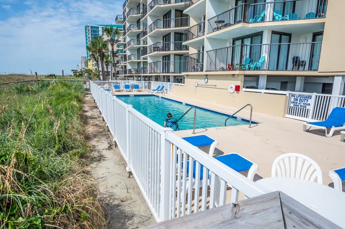 Conveniently located and within steps of the beach, enjoy walks on the beach, and swim in the pools! A short drive from Broadway at the Beach, Market Common, and Ripley’s Aquarium. Many of the area’s popular attractions, restaurants, golf courses, and shopping are a short drive away.