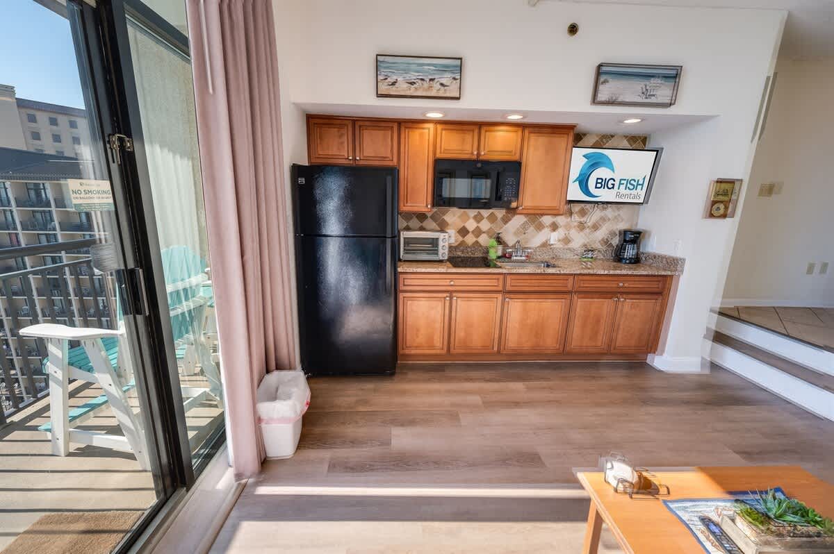 Amazing ocean views from the balcony are the perfect setting for your morning coffee or evening cocktails. Enjoy the convenience of your own kitchen featuring a full-sized fridge, microwave, and HDTV