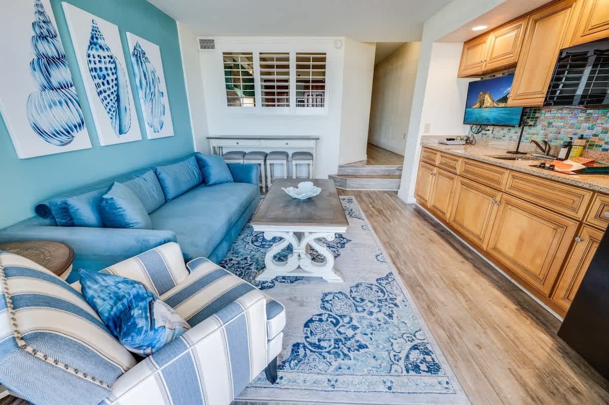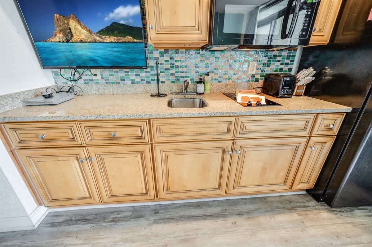 Amazing ocean views from the balcony are the perfect setting for your morning coffee or evening cocktails. Enjoy the convenience of your own kitchen featuring a full-sized fridge, microwave, and HDTV