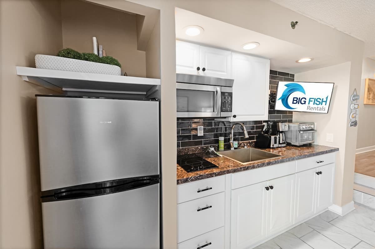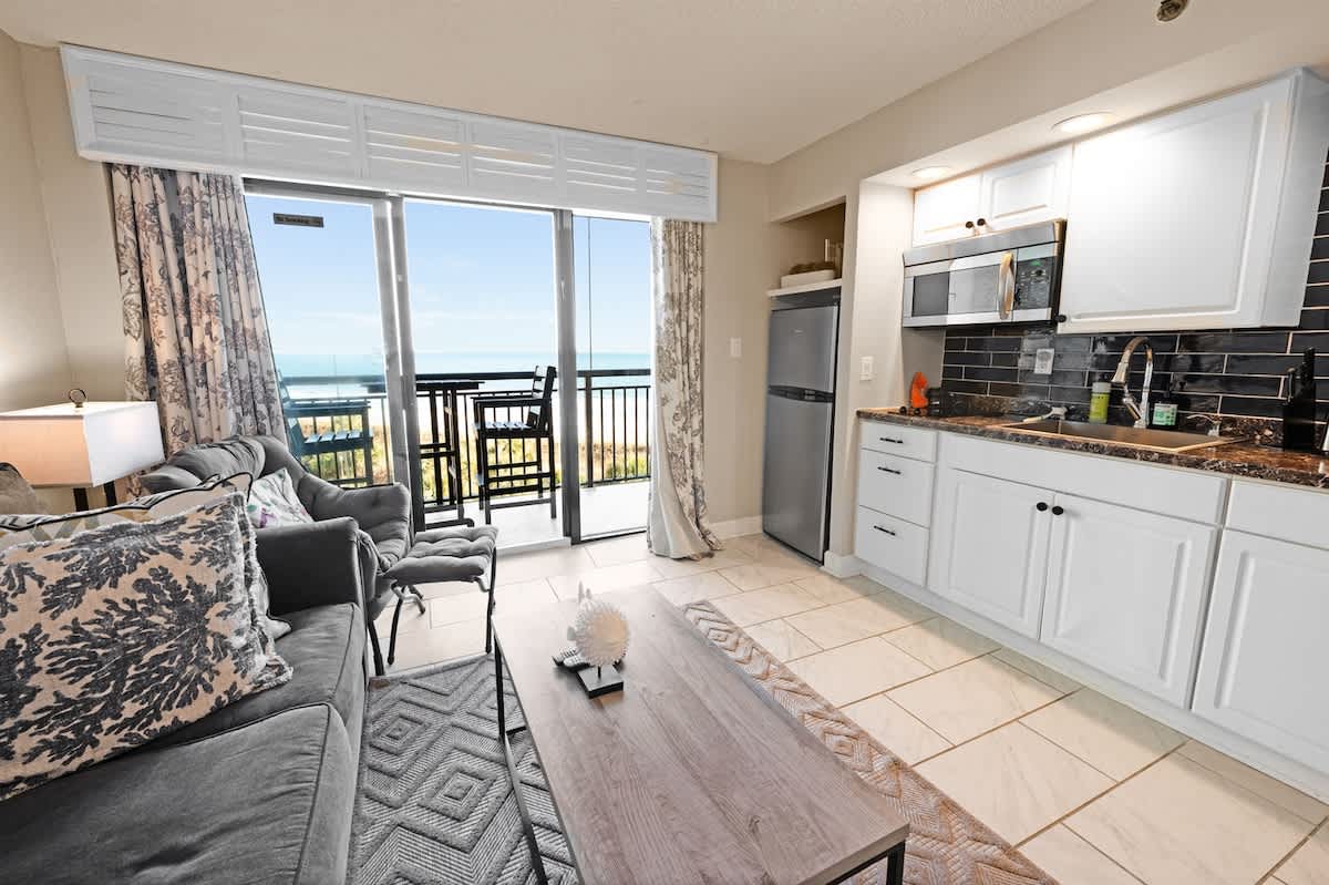 Amazing ocean views from the balcony are the perfect setting for your morning coffee or evening cocktails. Enjoy the convenience of your own kitchen featuring a full-sized fridge, microwave, and HDTV