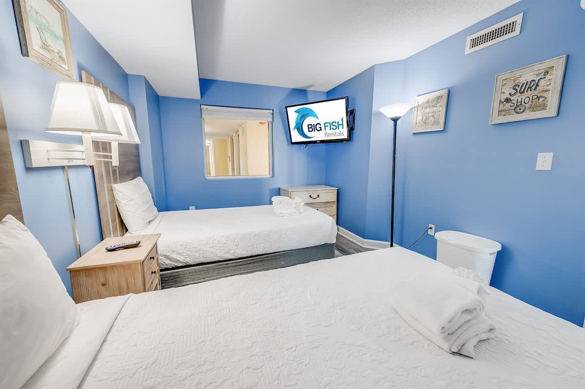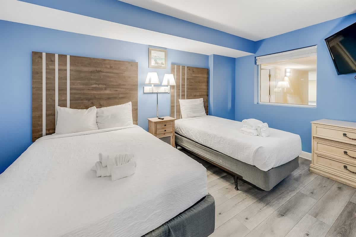 Camelot’s indoor pavilion with a glass front and potted plants contain a lazy river, a free-form pool, a small toddler pool, and a spa tub. Stroll down the ocean boulevard to enjoy the many restaurants and shops in the area. AND BEST OF ALL FREE WIFI