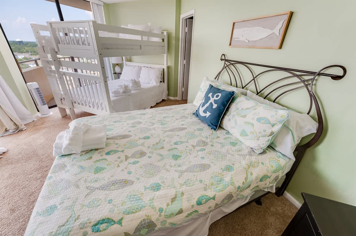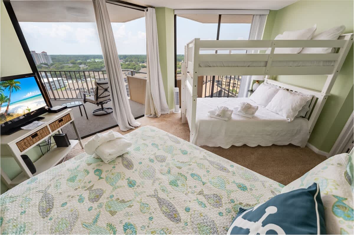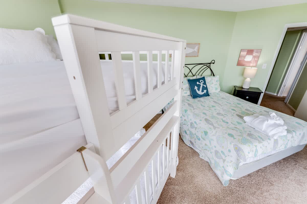 * Sleeps up to 6 guests with 1 King Bed and 1 Queen Bed, 1 Bunk Bed, with sheets and towels provided.