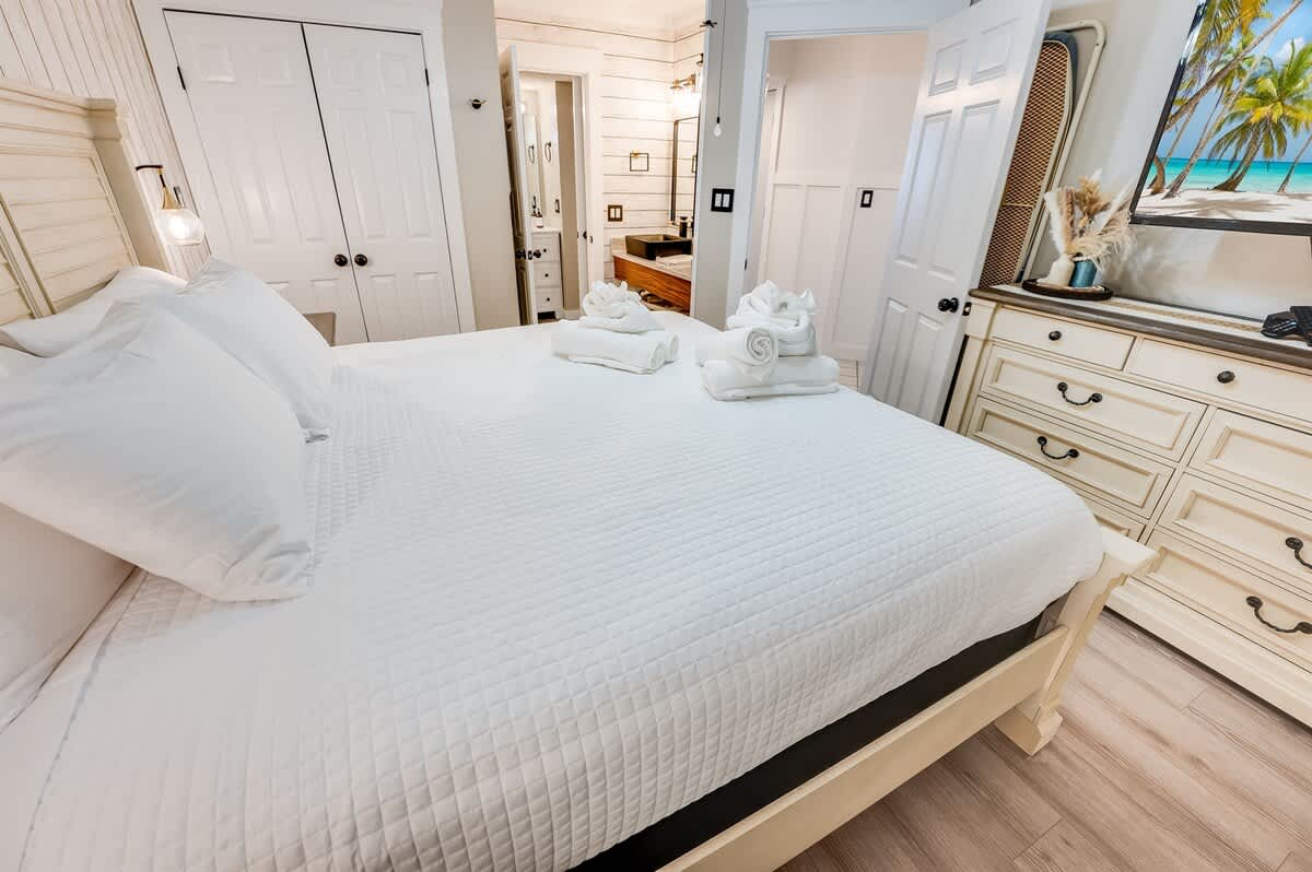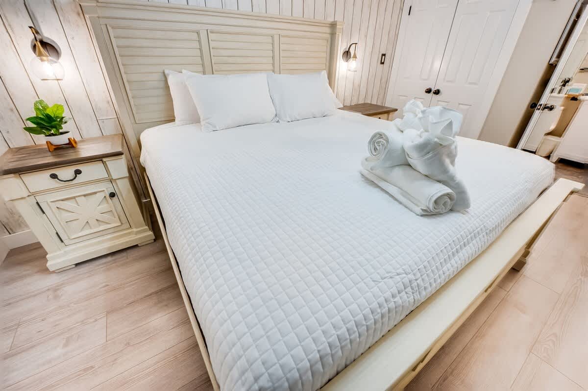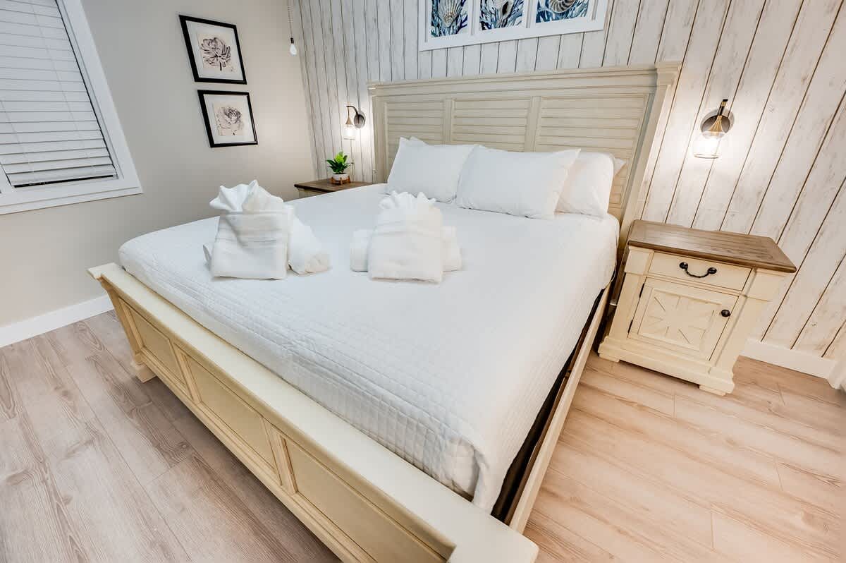 * 1 King Bed, 1 Sofa Bed. Sleeps up to 4, sheets provided