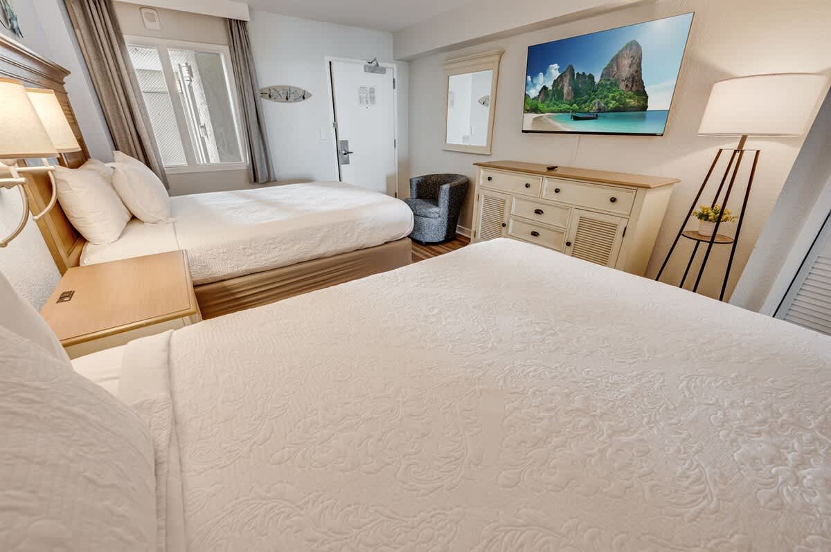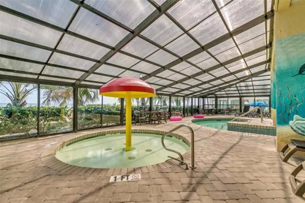 Abundant amenities await you at this beachfront resort. Features include both indoor and outdoor whirlpools, lazy river rides, spacious pool decks, and social areas, Oceanfront pools. Indoor pool! Children’s Interactive splash and play area. AND BEST OF ALL FREE WIFI!